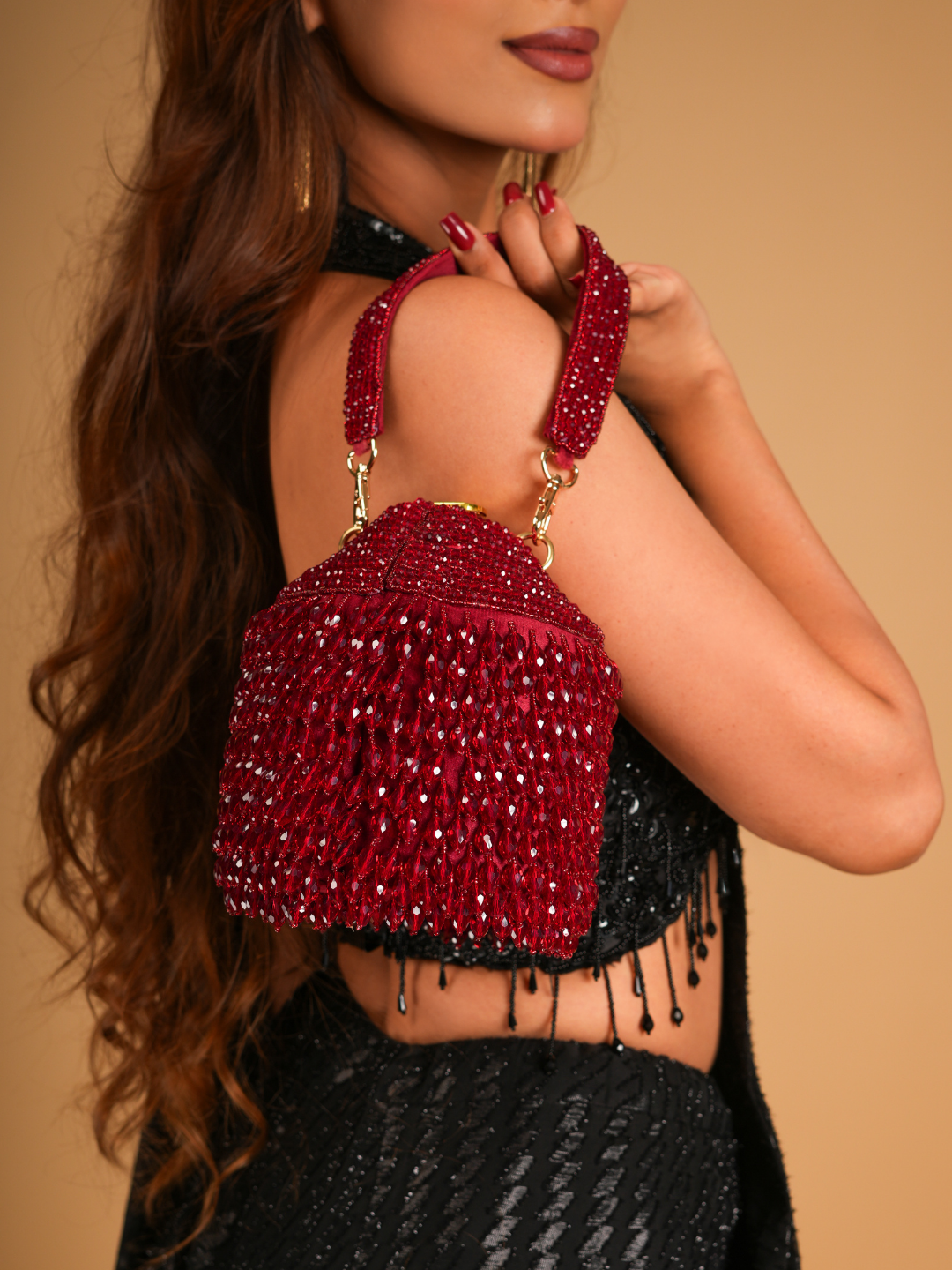 The structured potli-style silhouette gives it a modern edge, while the intricate beadwork creates a luxe, fashion-forward vibe—perfect for cocktail nights, birthday parties, festive gatherings, and evening outings.