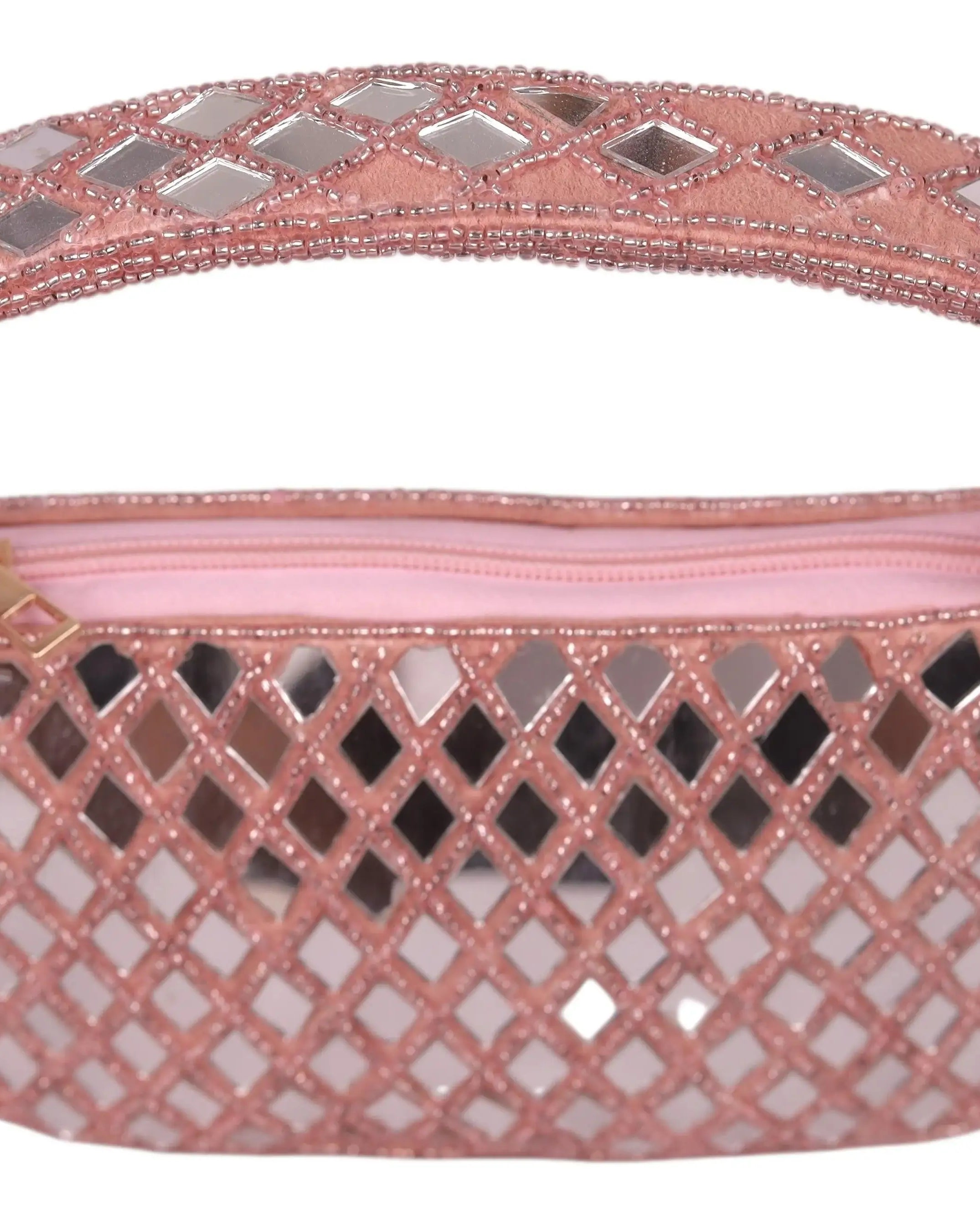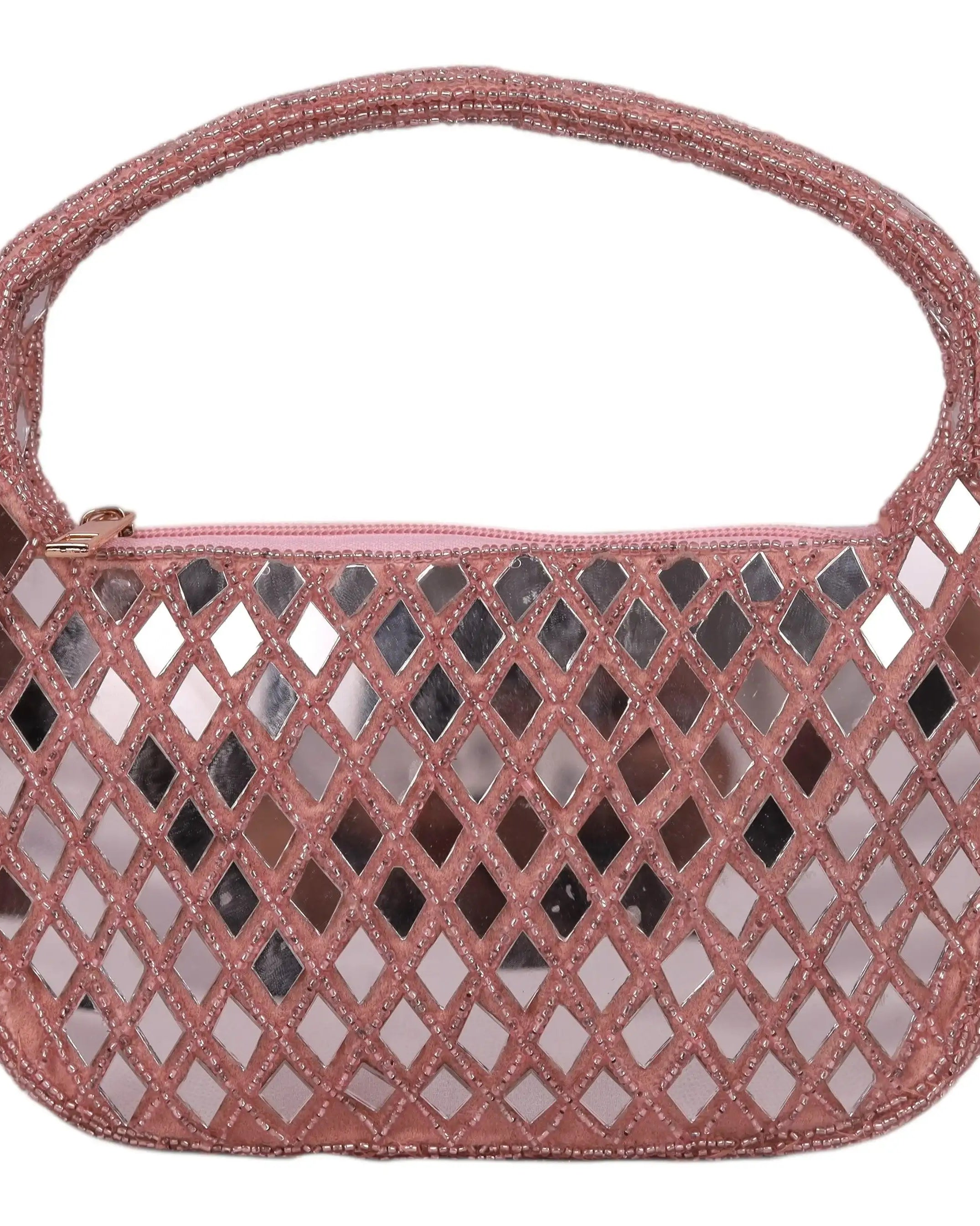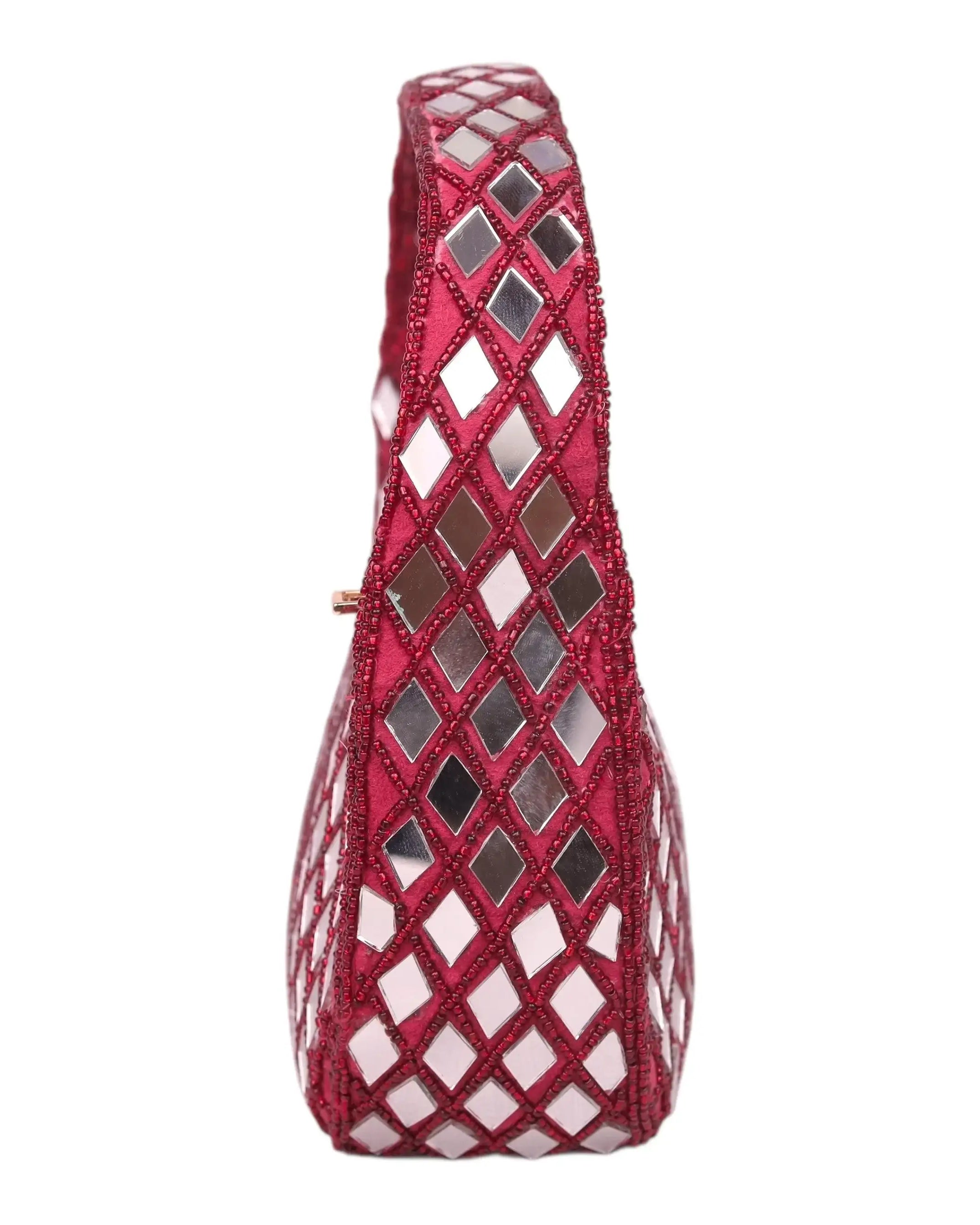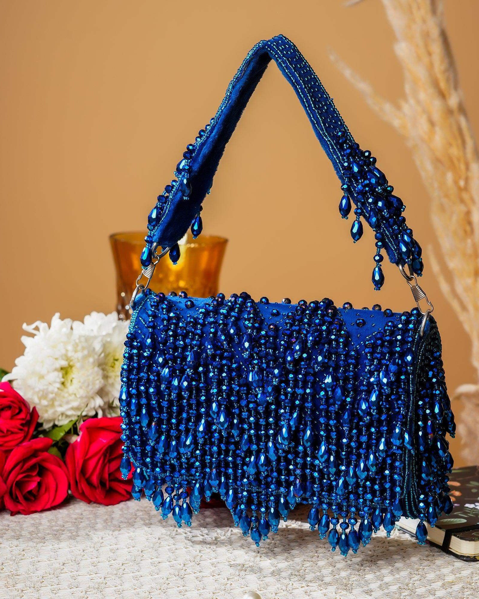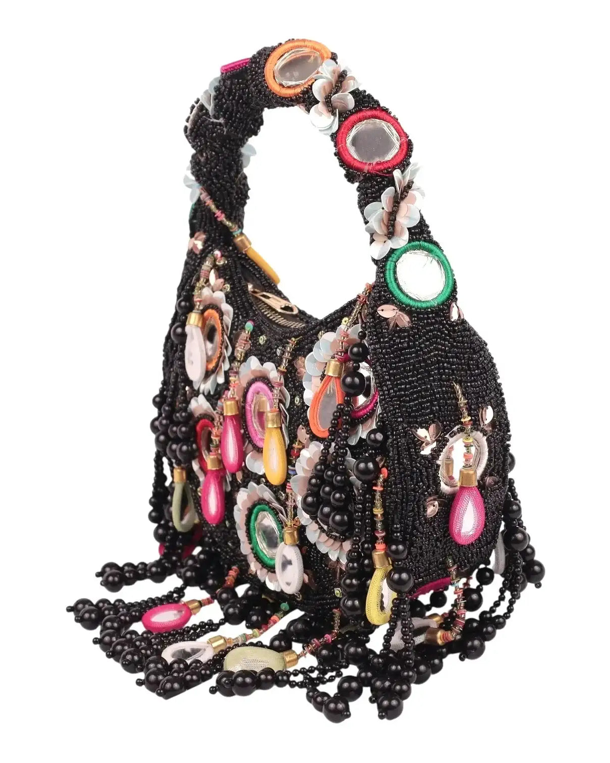 Add a touch of elegance to your ensemble with this stunning emerald pink beaded handbag. Designed in a chic crescent silhouette, this statement piece is intricately embellished with shimmering green beads, sequins, and delicate pearl accents, creating a rich texture that catches the light beautifully. The structured handle ensures comfort while carrying, making it the perfect accessory for weddings, festive occasions, or glamorous evenings out.