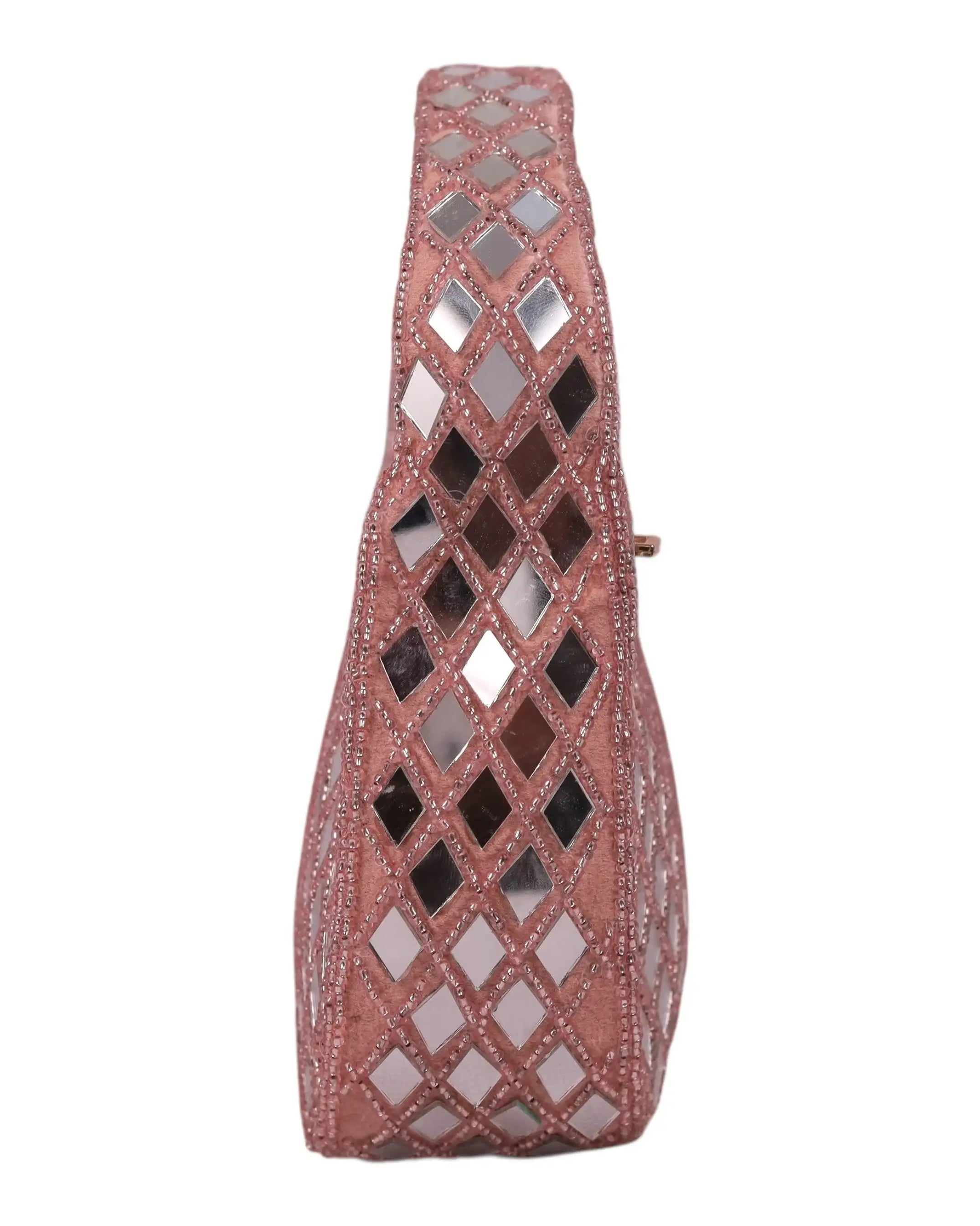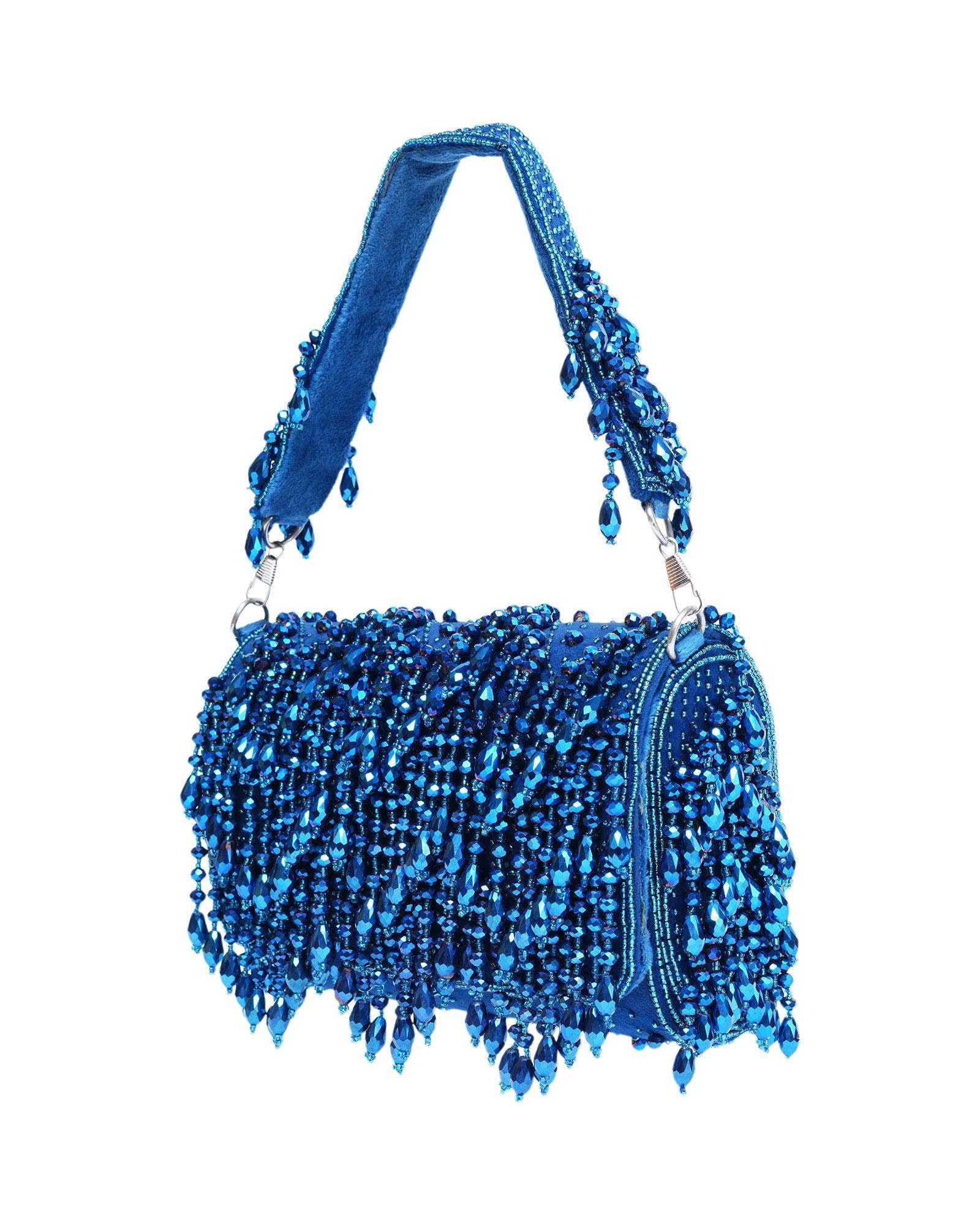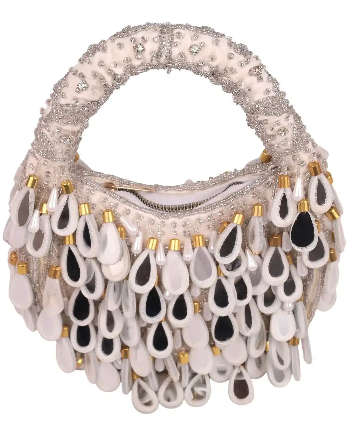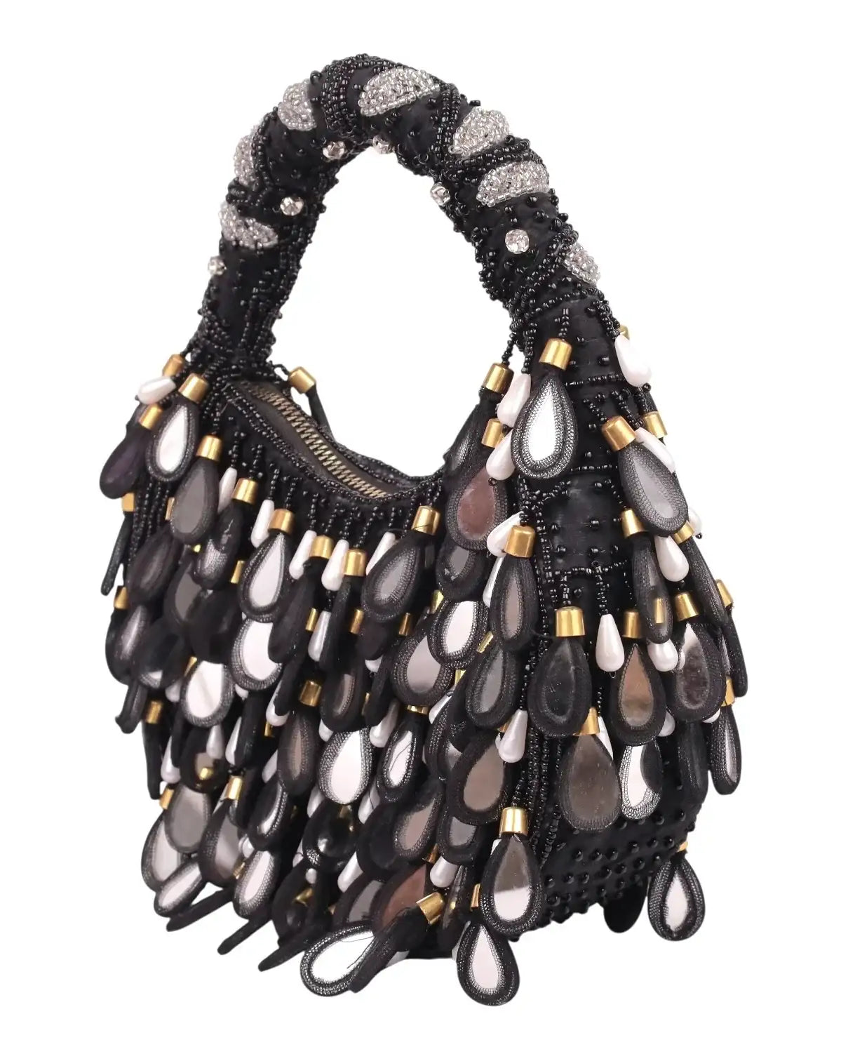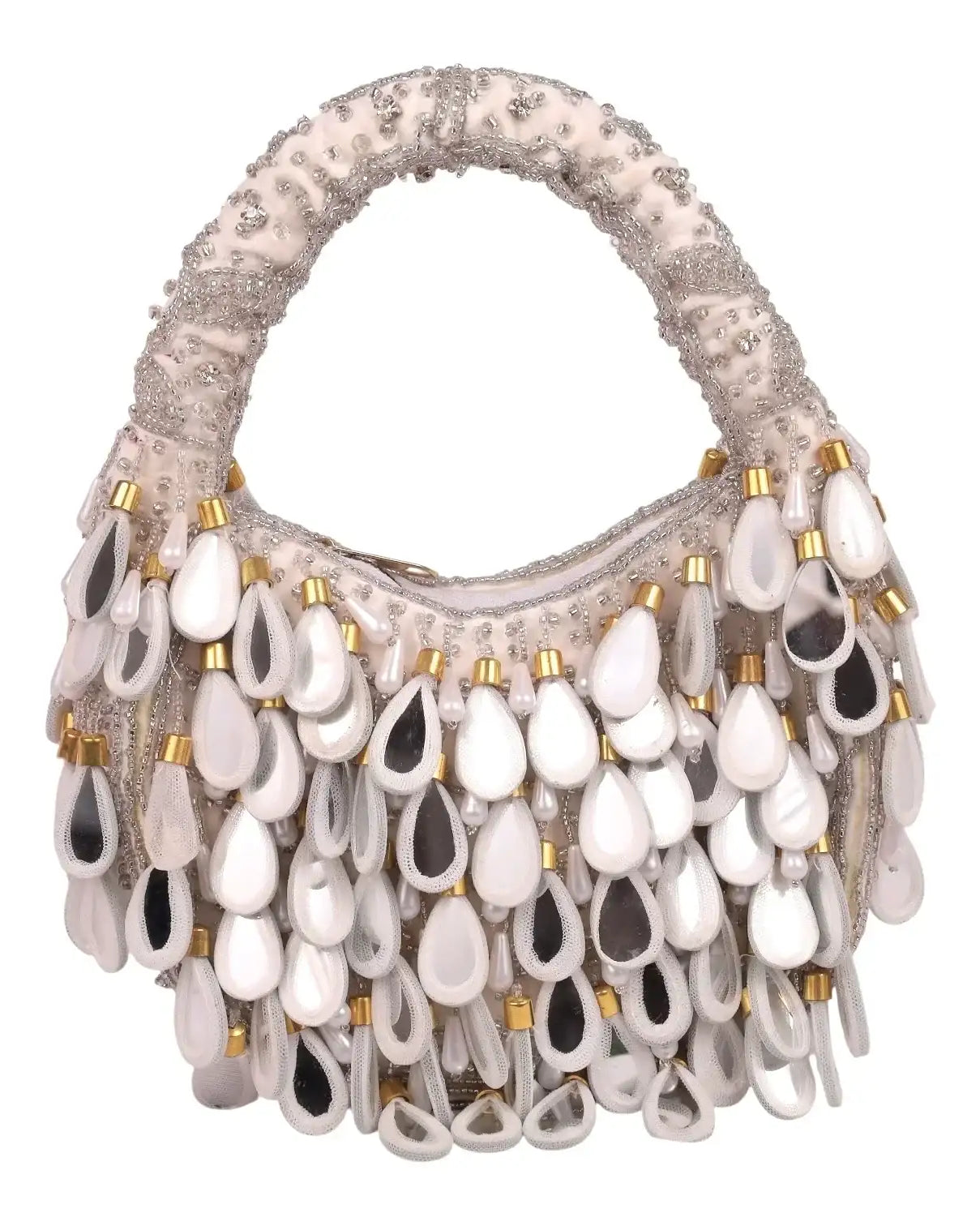 Add a touch of elegance to your ensemble with this stunning emerald pink beaded handbag. Designed in a chic crescent silhouette, this statement piece is intricately embellished with shimmering green beads, sequins, and delicate pearl accents, creating a rich texture that catches the light beautifully. The structured handle ensures comfort while carrying, making it the perfect accessory for weddings, festive occasions, or glamorous evenings out.