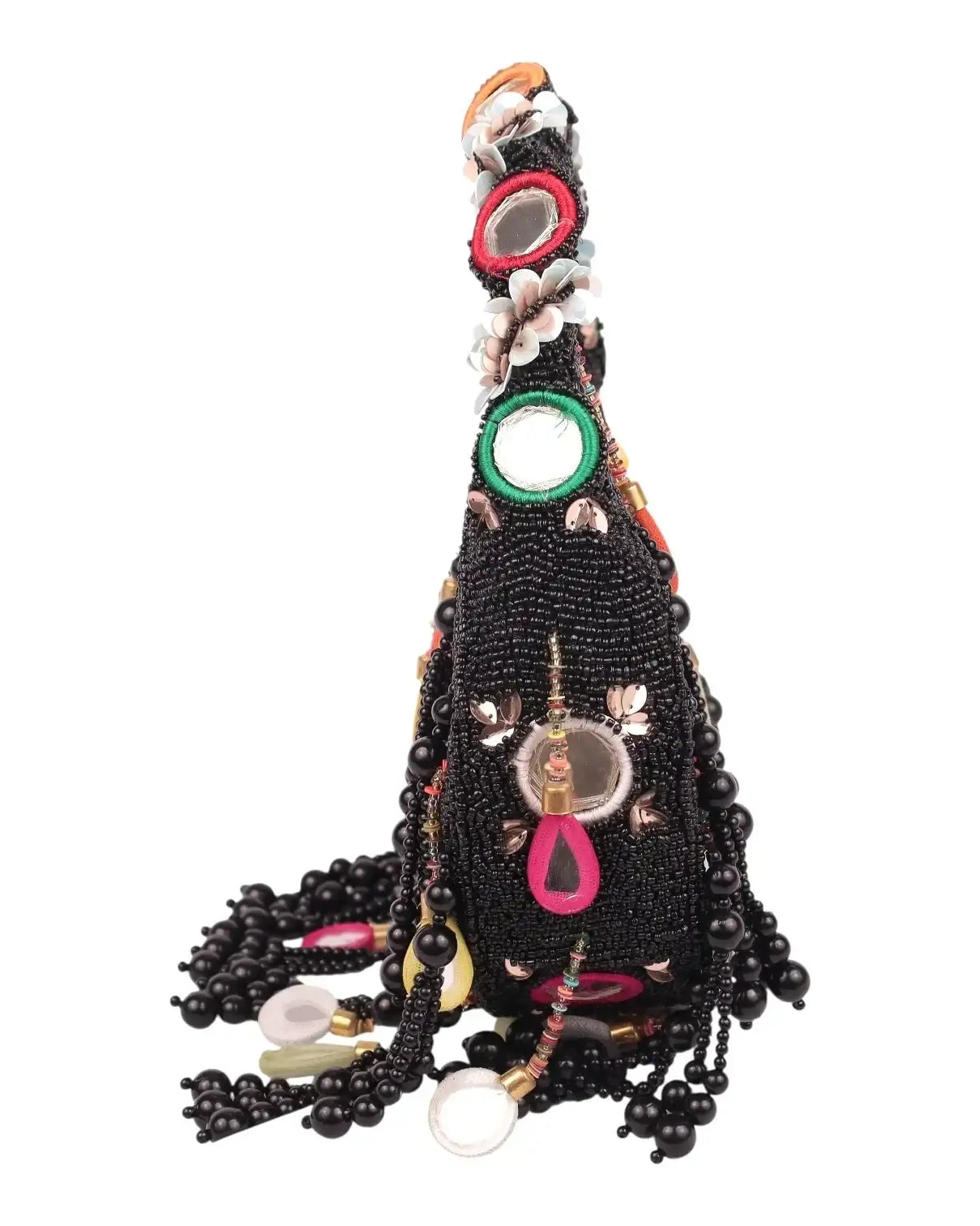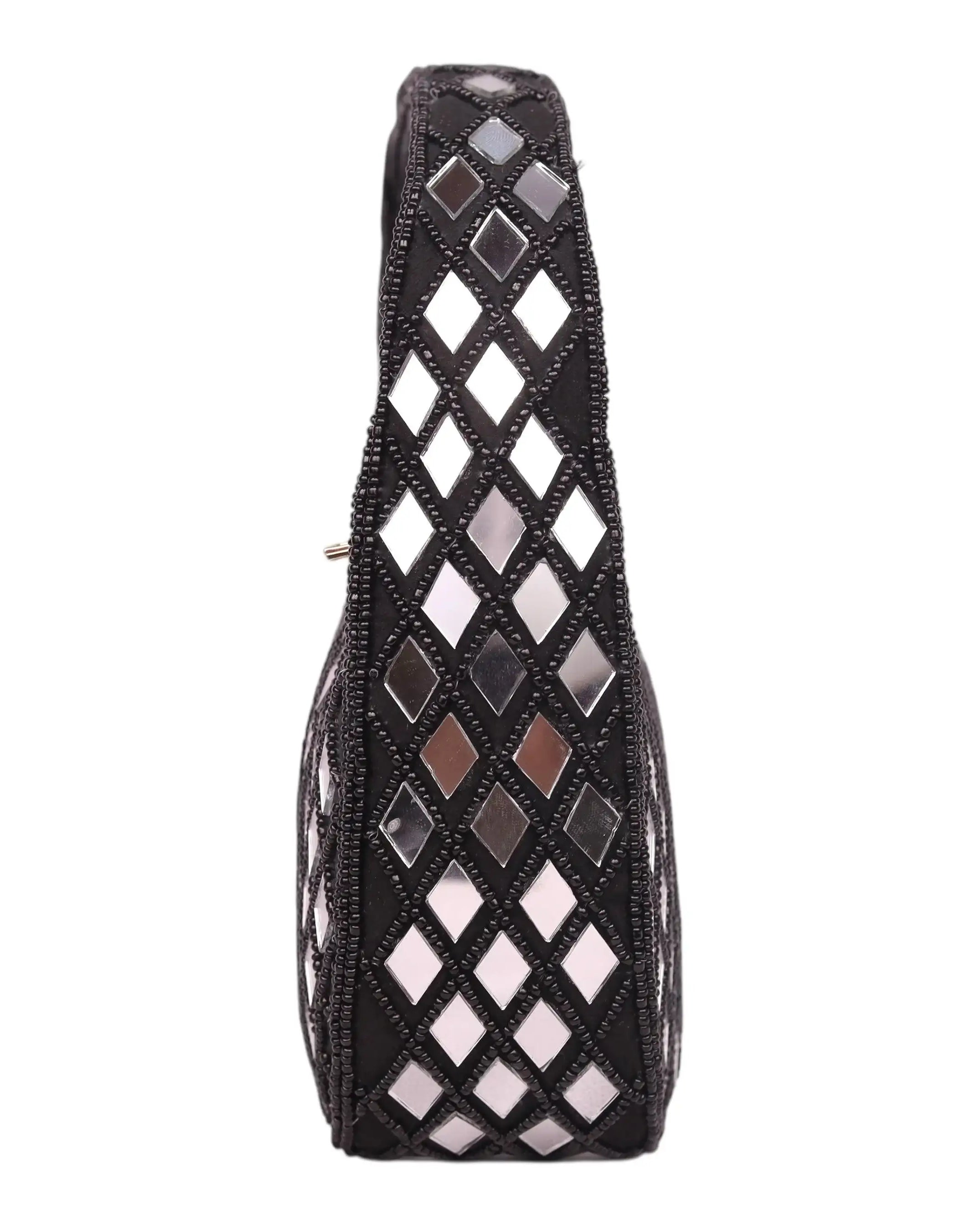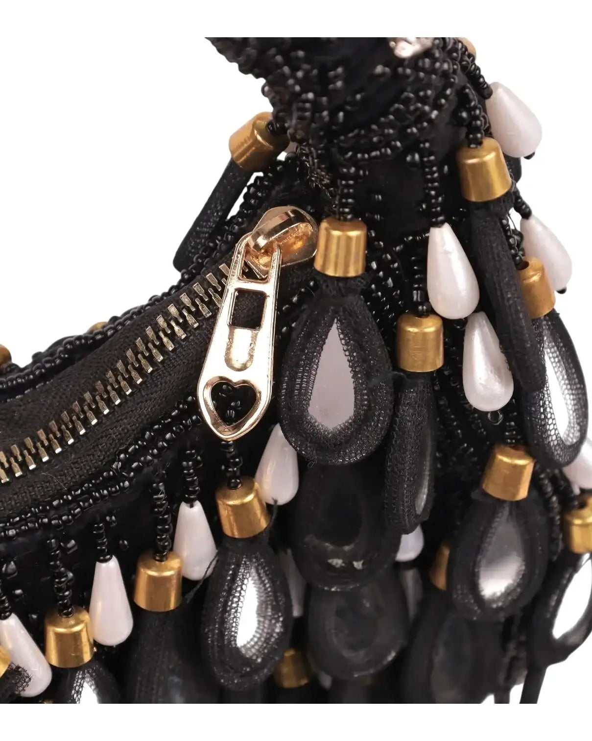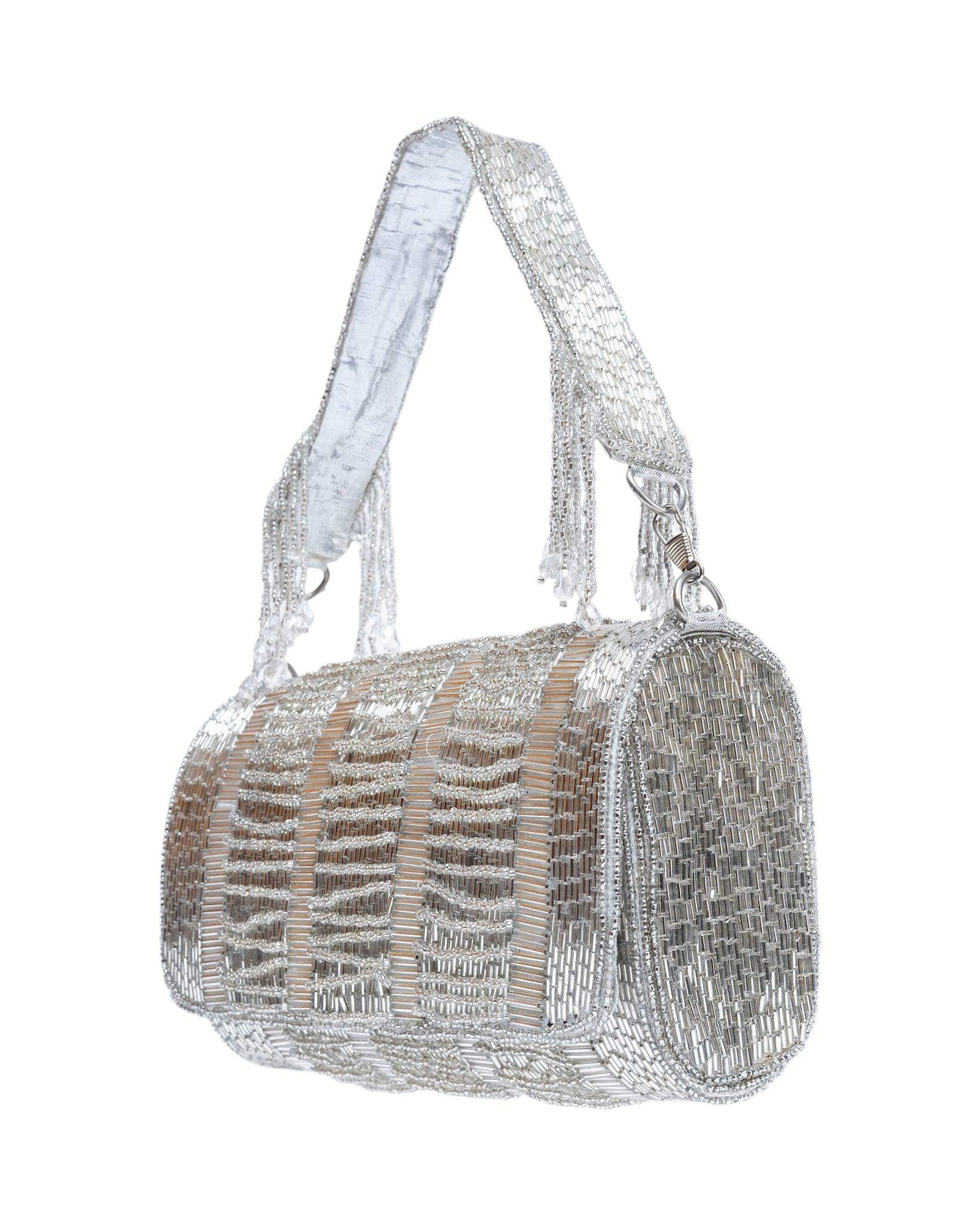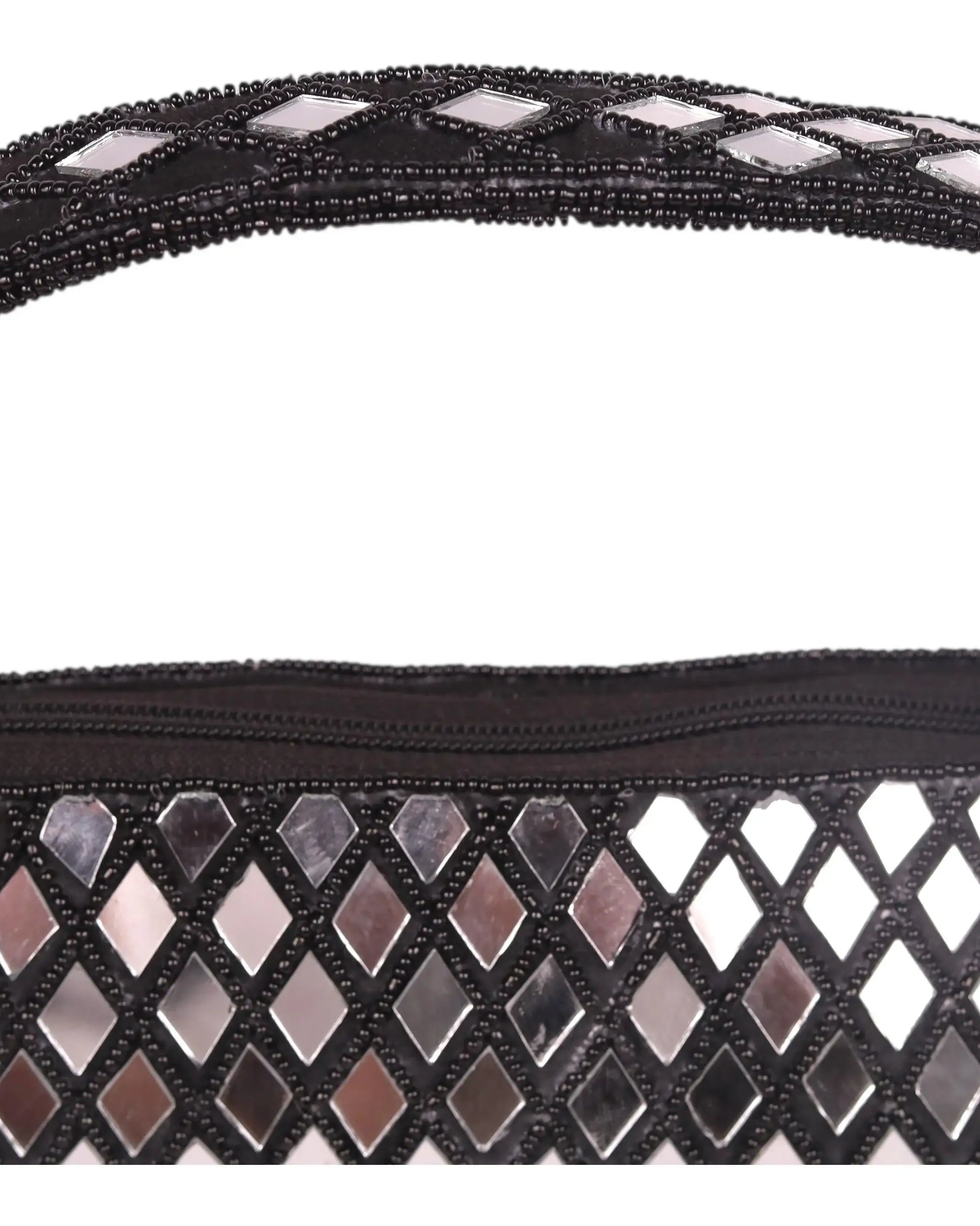 Add a touch of elegance to your ensemble with this stunning emerald pink beaded handbag. Designed in a chic crescent silhouette, this statement piece is intricately embellished with shimmering green beads, sequins, and delicate pearl accents, creating a rich texture that catches the light beautifully. The structured handle ensures comfort while carrying, making it the perfect accessory for weddings, festive occasions, or glamorous evenings out.