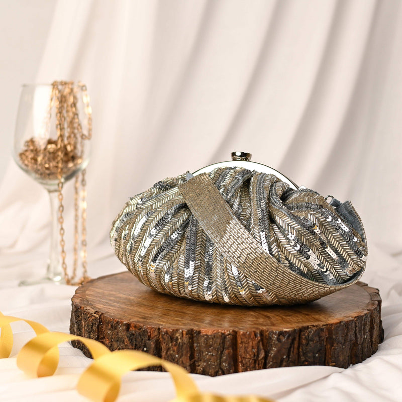 sugarcrush Lustrous silver Batua Bag with Handle
