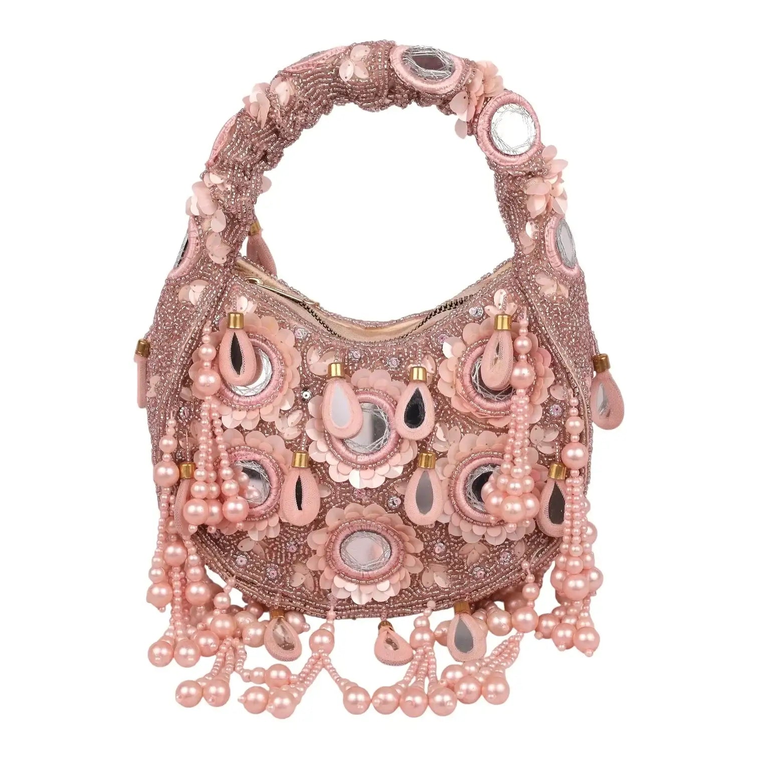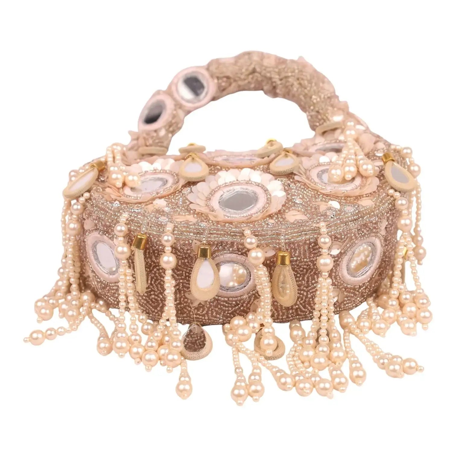 Complete your bridal look with our luxurious collection of handcrafted bridal clutches and potli bags, designed to complement every wedding ensemble. From beaded and embroidered clutch purses to traditional potlis adorned with mirror work, sequins, zari, and kundan, each piece exudes elegance and charm.