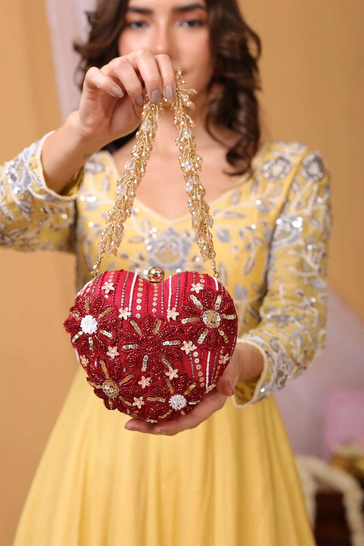 Crafted with precision stitching, this bag reflects durability and premium craftsmanship while retaining its luxurious appeal. The neatly finished interior offers ample space to carry your phone, makeup essentials, and other valuables with ease. A perfect balance of style and practicality, making it your go-to accessory for weddings, festive events, and elegant evenings.