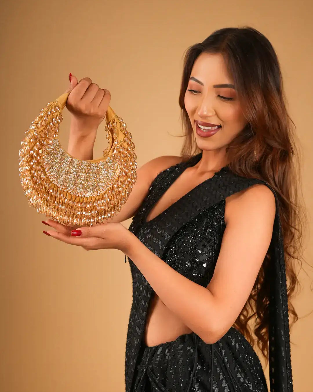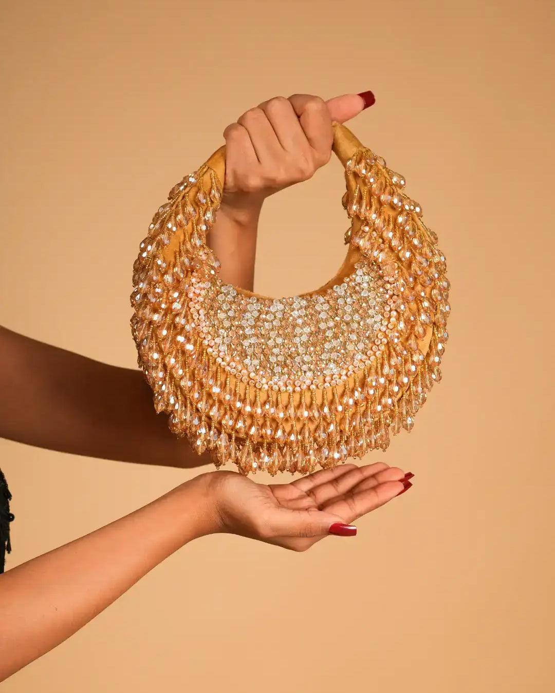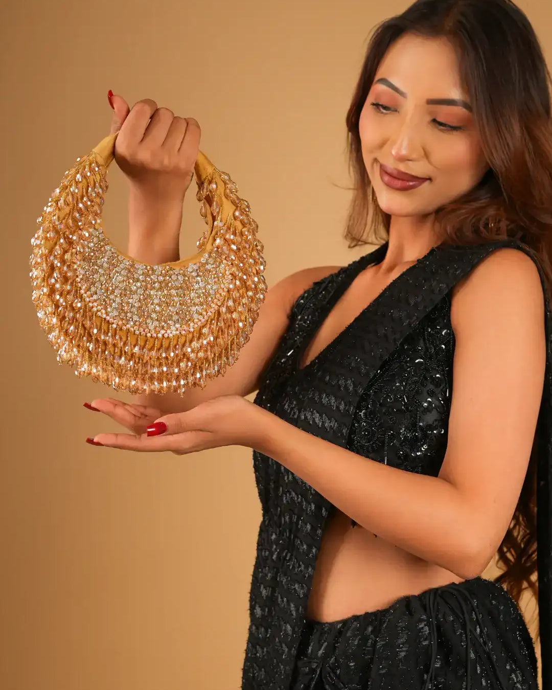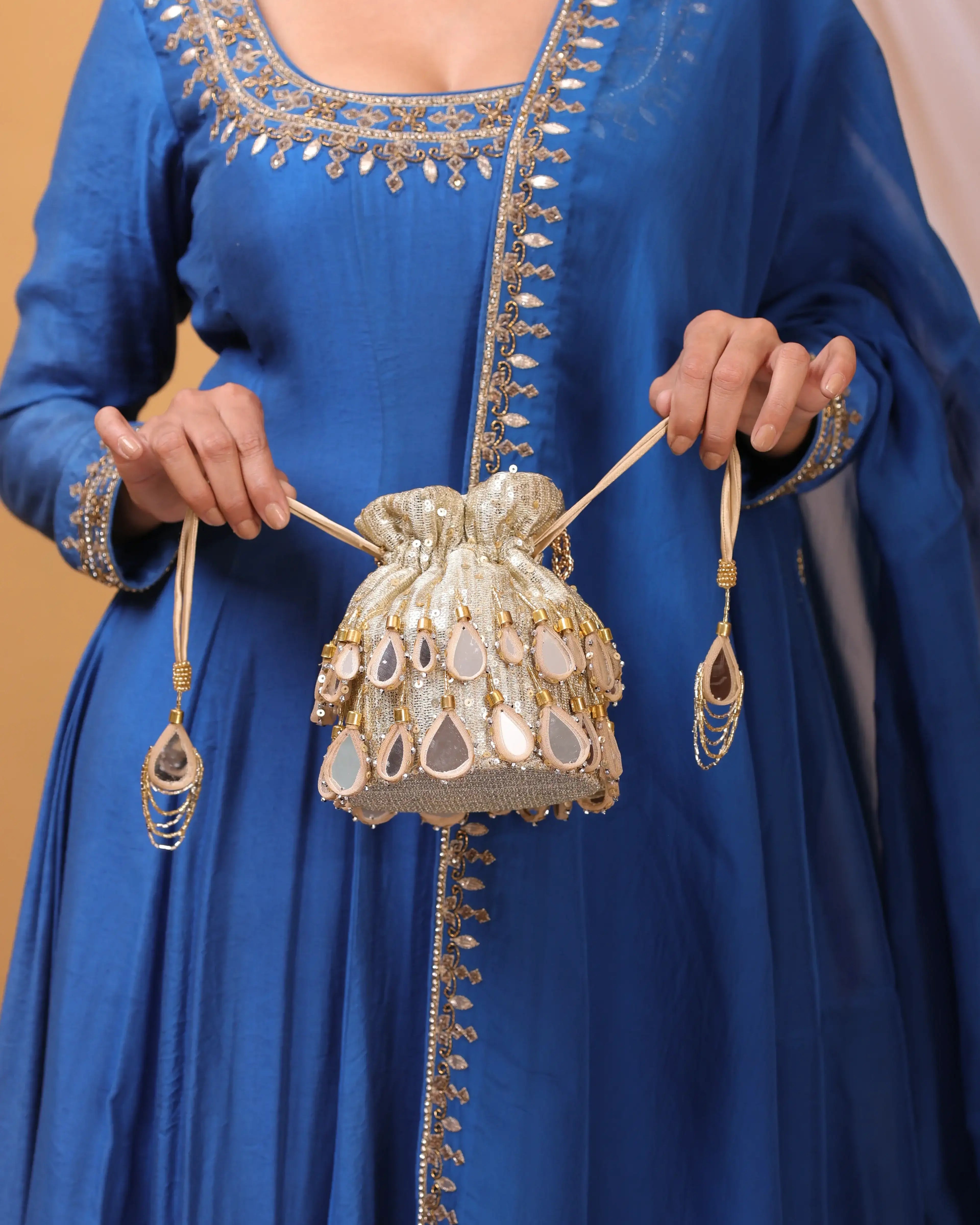 Elevate your look with our exquisite Monroe black Vintage Purse. Crafted in black sequence, this purse features intricate sequence work, adding a touch of timeless elegance. The beautifully detailed embroidery showcases a fine blend of craftsmanship, making it a standout accessory for any occasion. Spacious yet stylish, it is perfect for carrying your essentials while complementing your attire. Whether for weddings, parties, or special celebrations, this vintage bag is a must-have addition to your accessory collection.