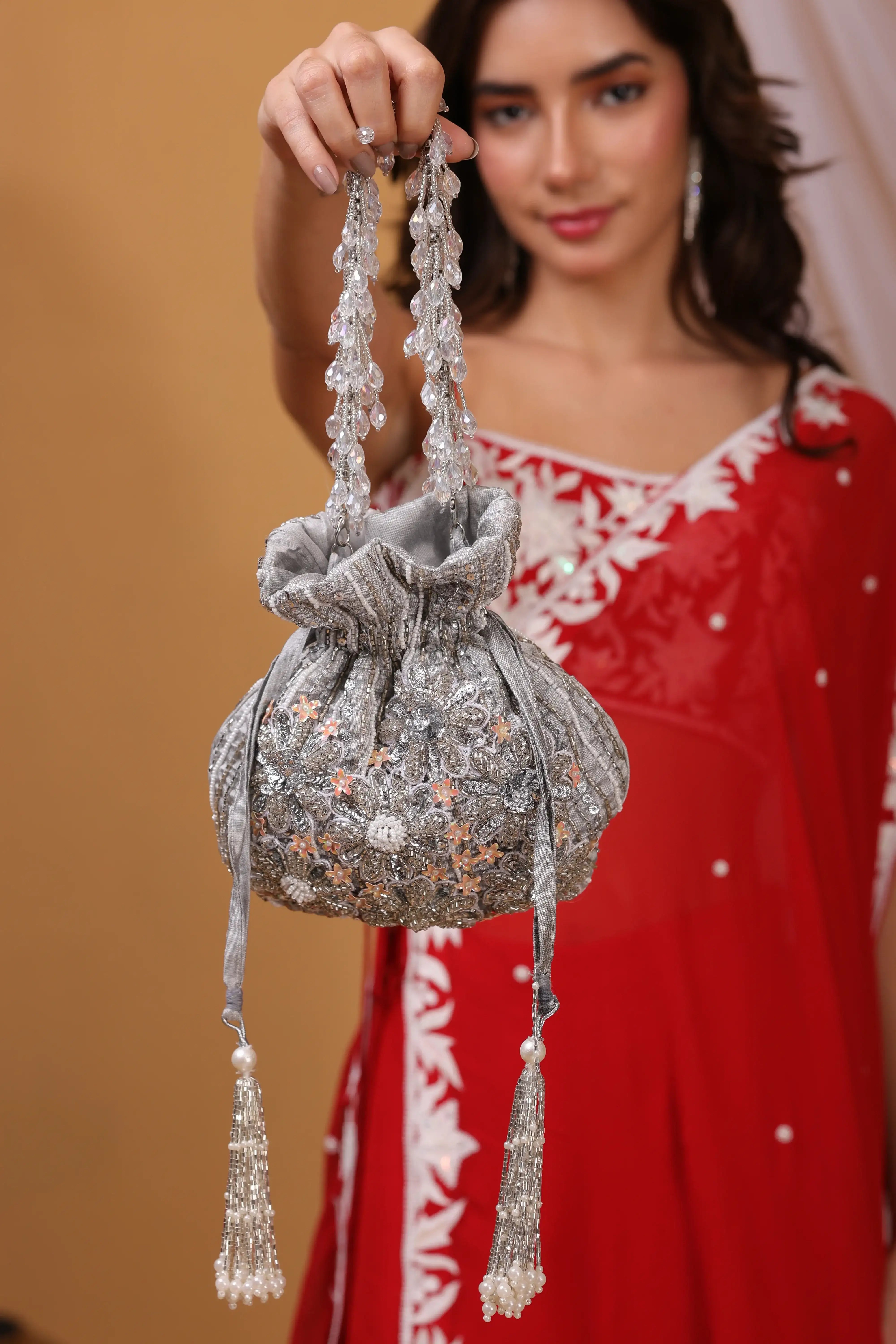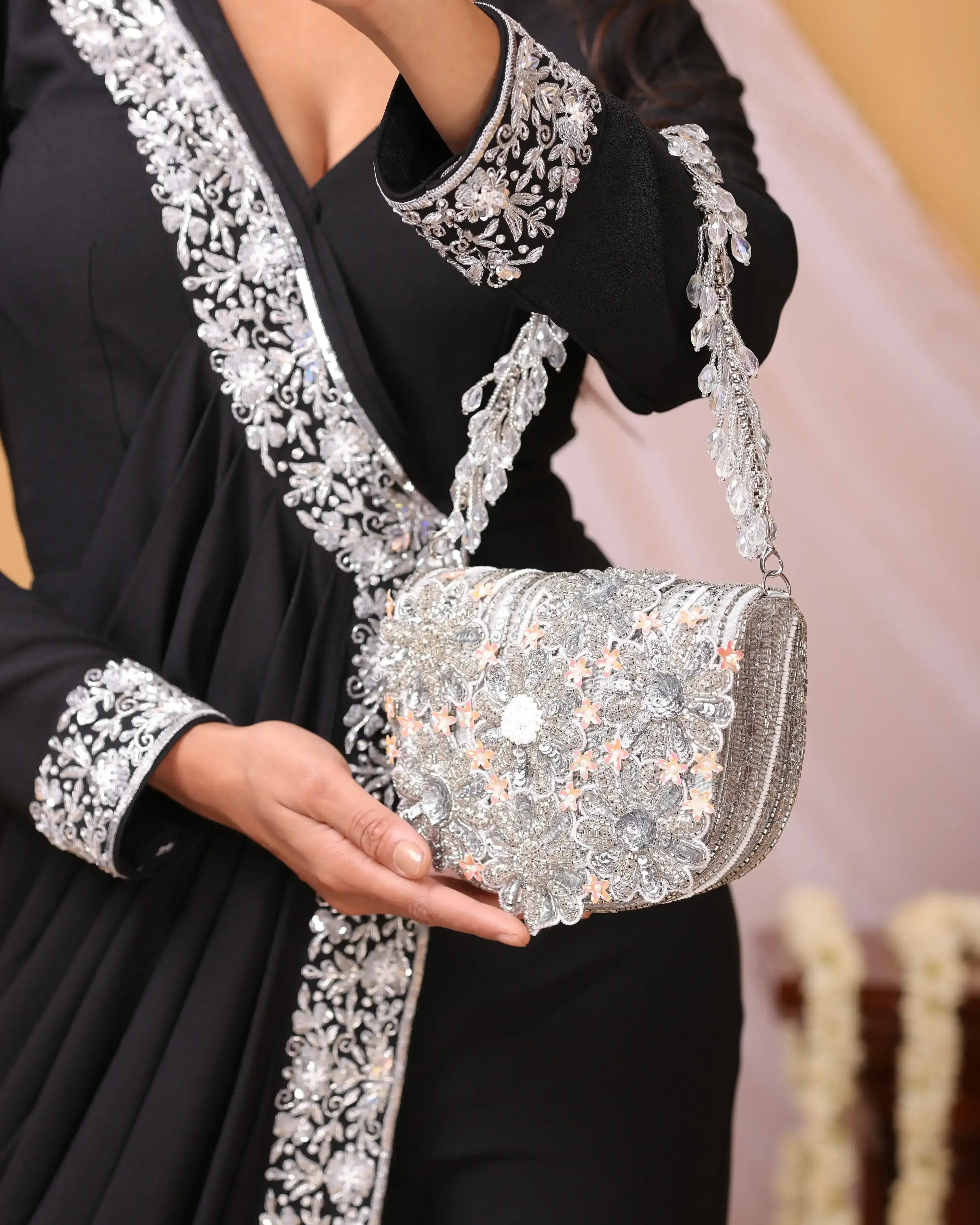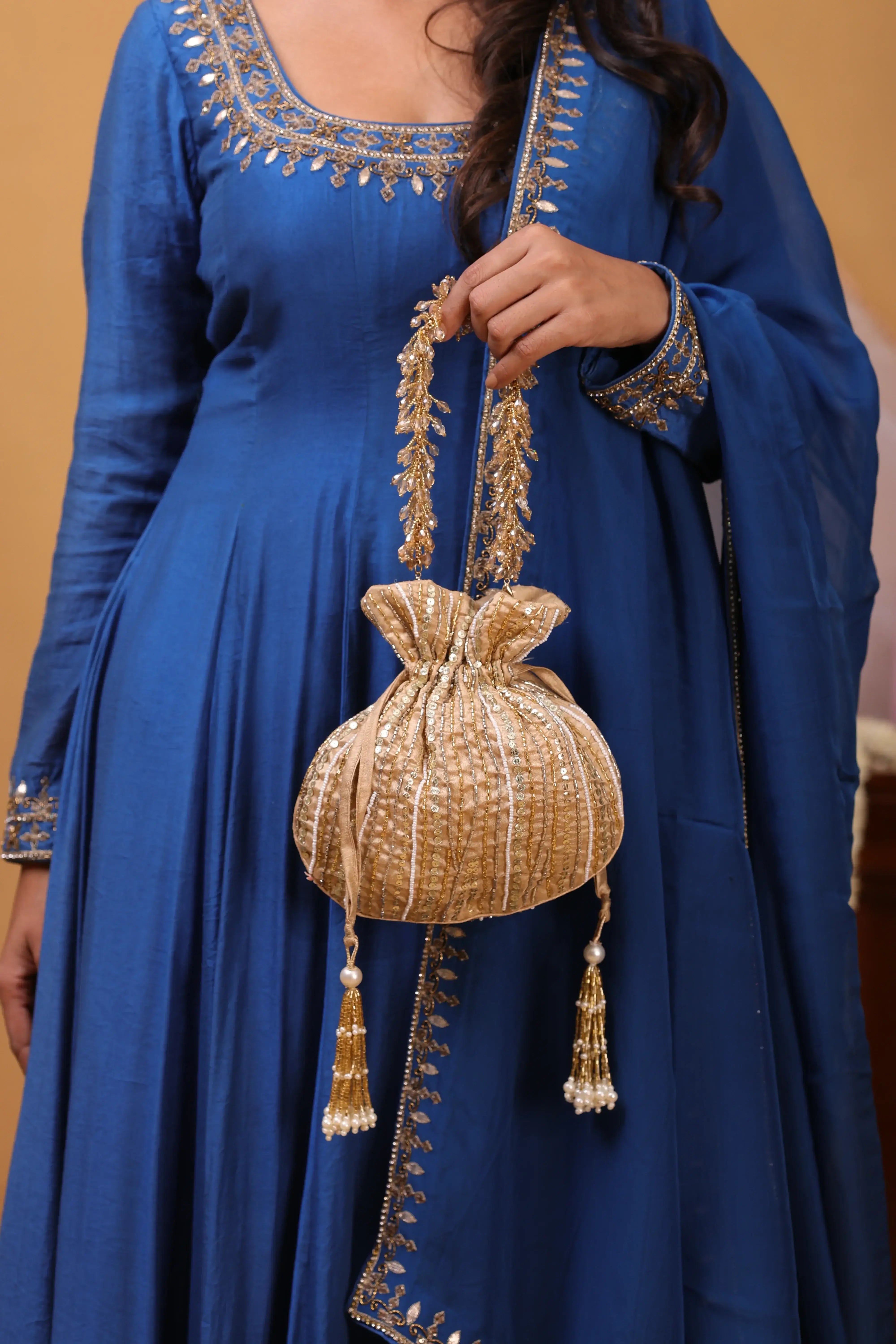 Celebrate your Haldi ceremony in style with our vibrant collection of potli bags and clutches designed especially for this joyful pre-wedding ritual. Featuring traditional motifs, floral embellishments, mirror work, gotta patti, and cheerful yellow hues, these Haldi clutches and potlis are the perfect accessory to complete your radiant bridal look.