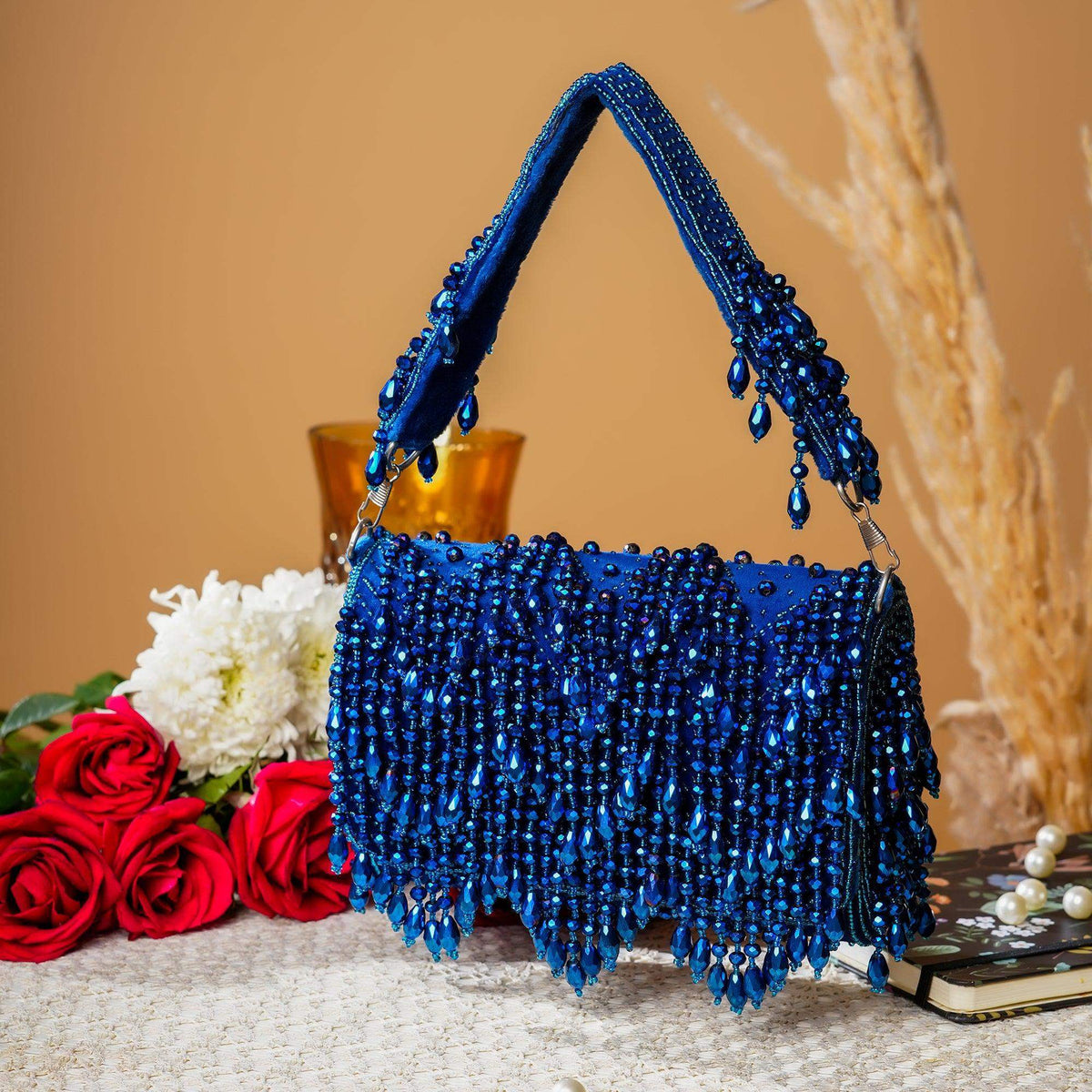 A new look of the tiffany box bag, this crystal version is a party on it's own. The glass pearl tassels and the crystals on the flap are a match made in bag heaven. Carry it to your next soiree and be the centre of everyone's attention.