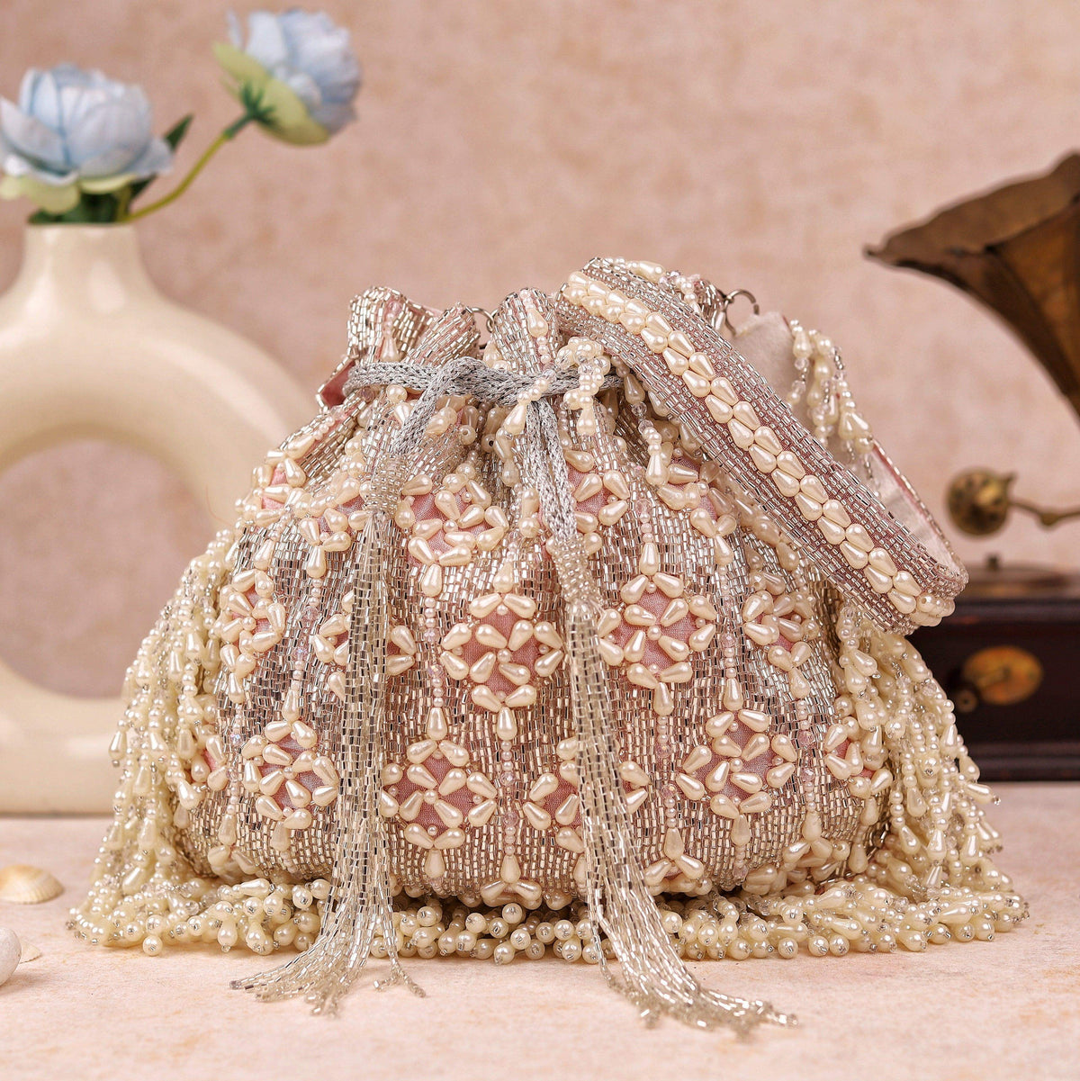 The Athena Potli is the perfect combination of chic and classiness. Beautifully handcrafted with beads this Potli bag can be accessorised with both western and indian wear. The fringe detailing adds the perfect omph to the potli.