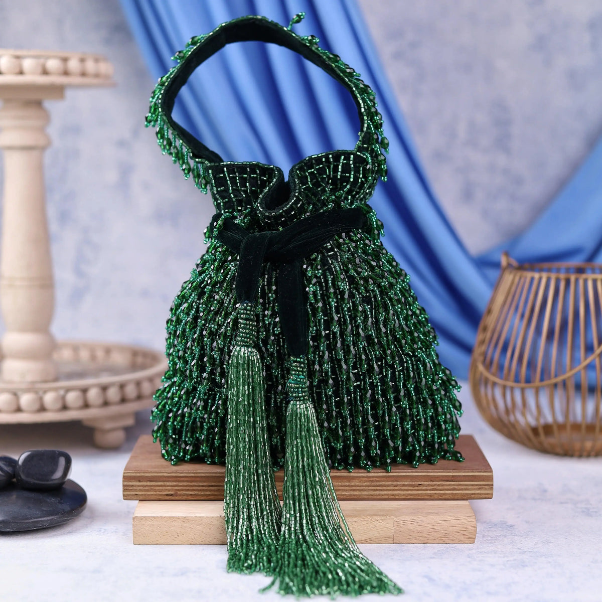 Designed for the discerning few, the bella potli bag manifests fine details in every facet – the handle is fully handcrafted with glass crystals to accentuate the regal jeweled vibe.