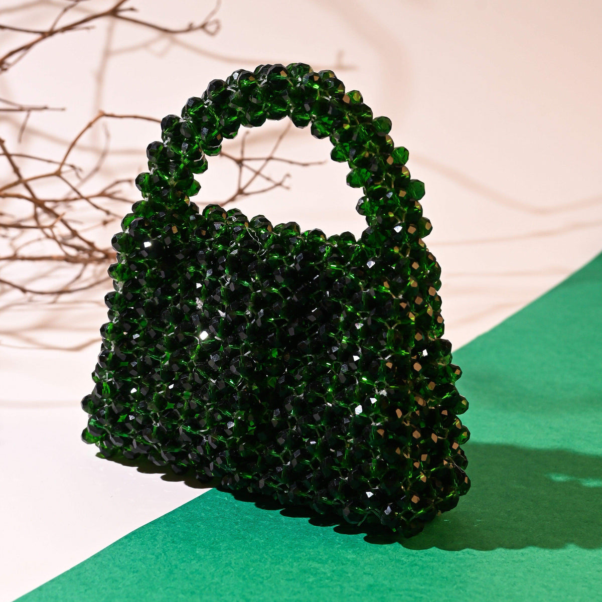 Structured crystal bag with premium finishing & magnet button closure.