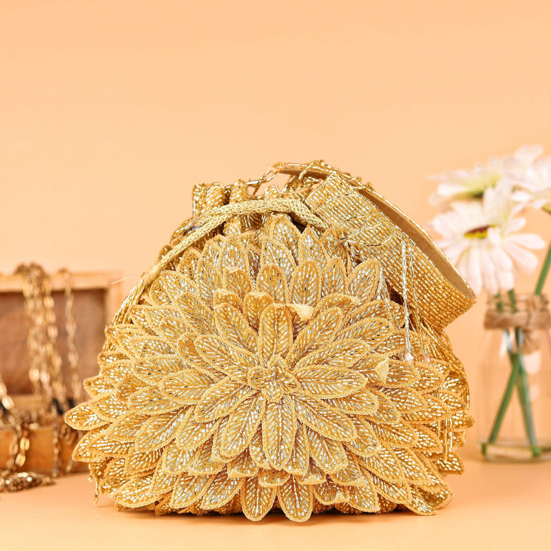 Sturdy and confident-our Isa potli bag is our offering for the young at heart. An avant-garde design in a heart shape case is accentuated with finely hand-embroidered petals put together as a full bloom rose. For our potlis we use the best quality Japanese beads in all our bags h/w most of them are metal coated and like any metal have a tendency to oxidize over a period of time if they get a bigger exposure to moisture or air.