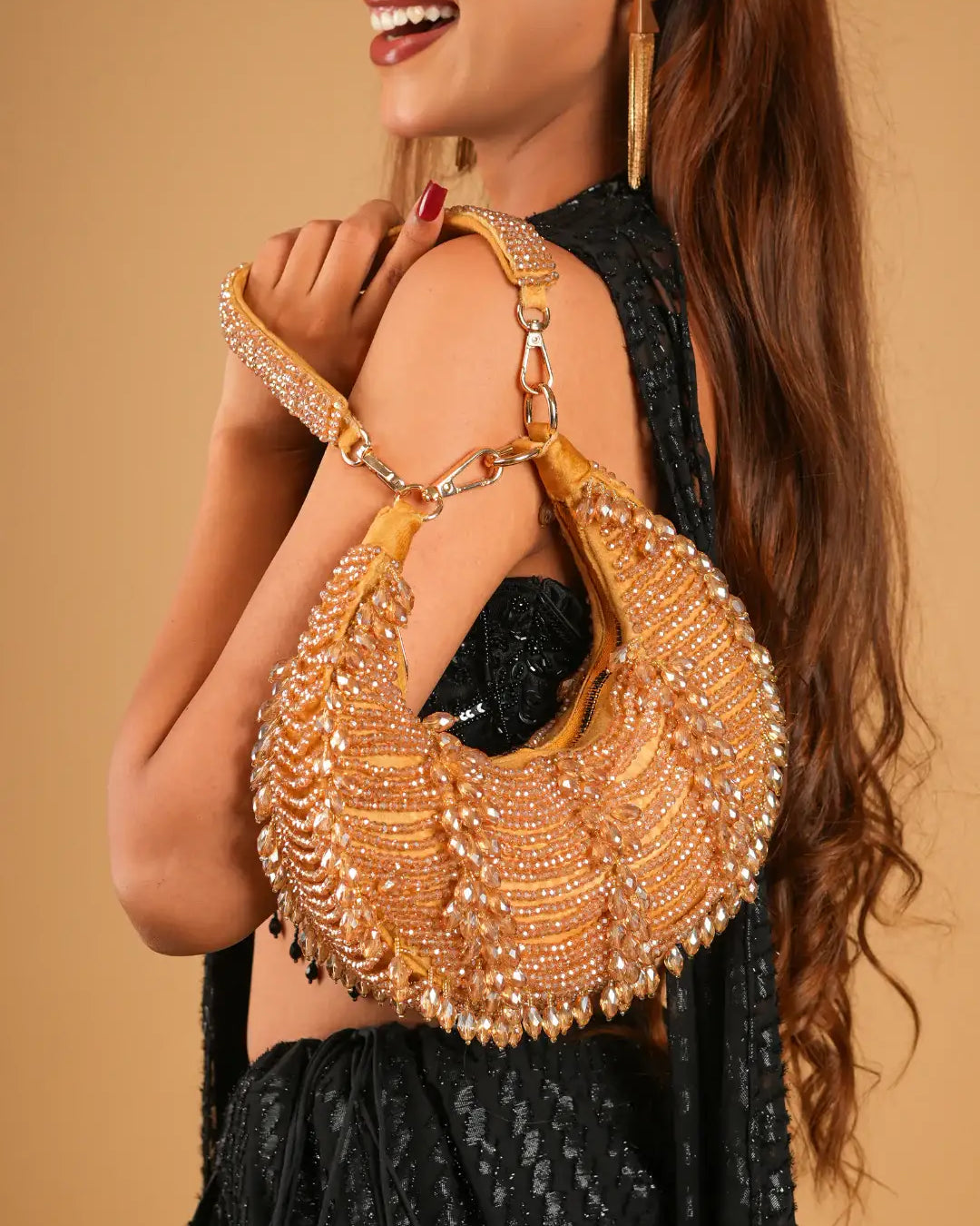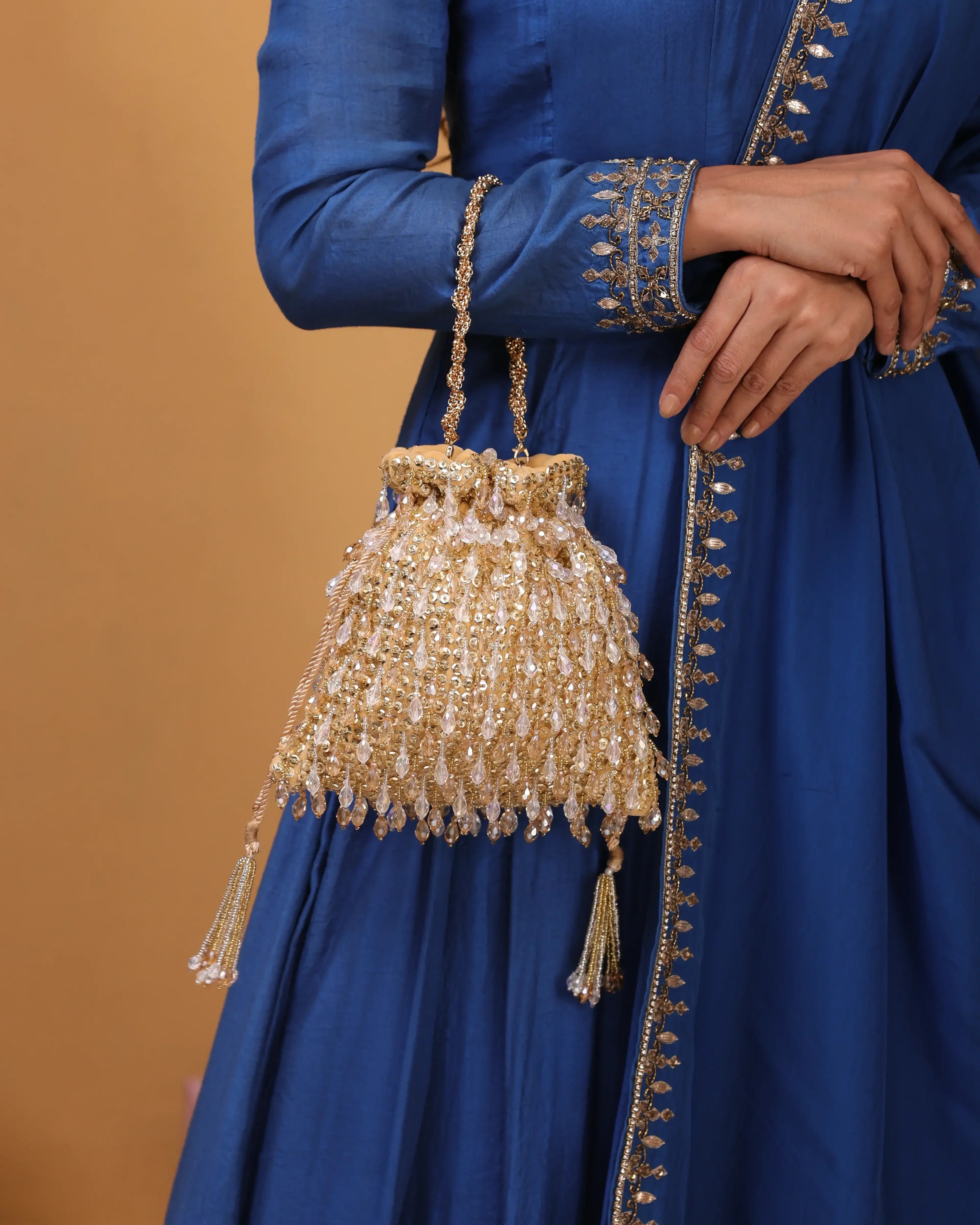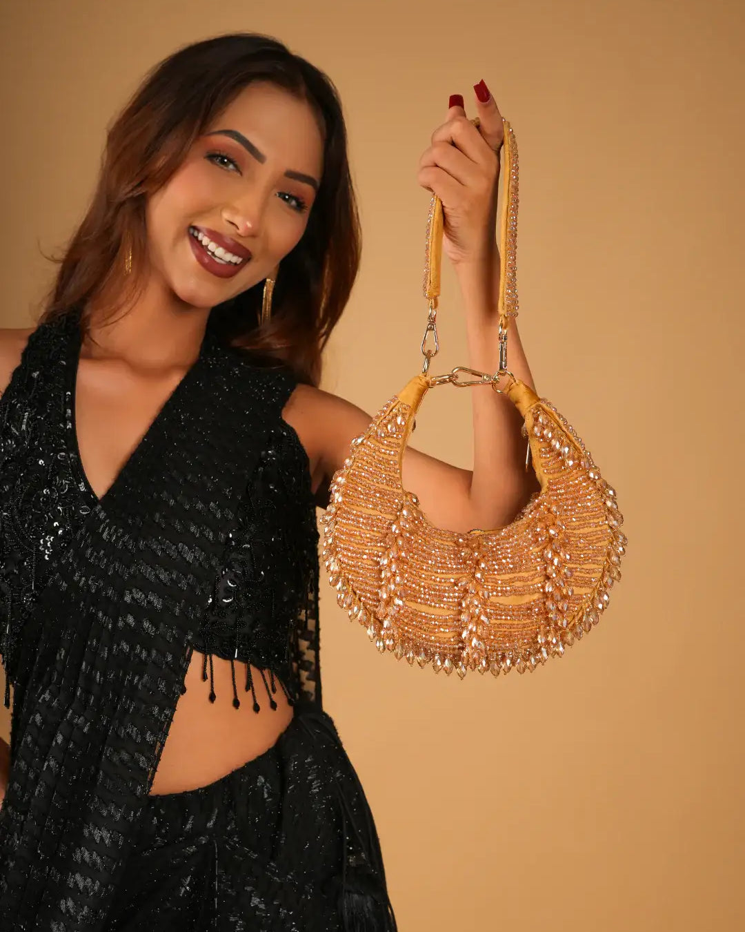 Perfect for the evening that calls for grace with a touch of grandeur, each clutch in this collection is crafted to complement dazzling gowns, lehengas, and sarees. From champagne tones to midnight hues, Reception Radiance ensures you're never without that final, flawless detail.