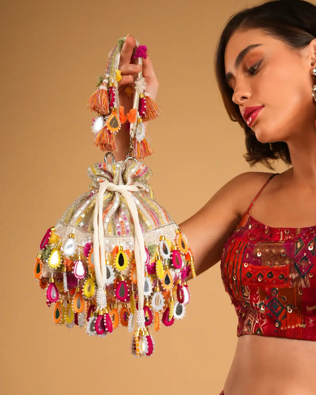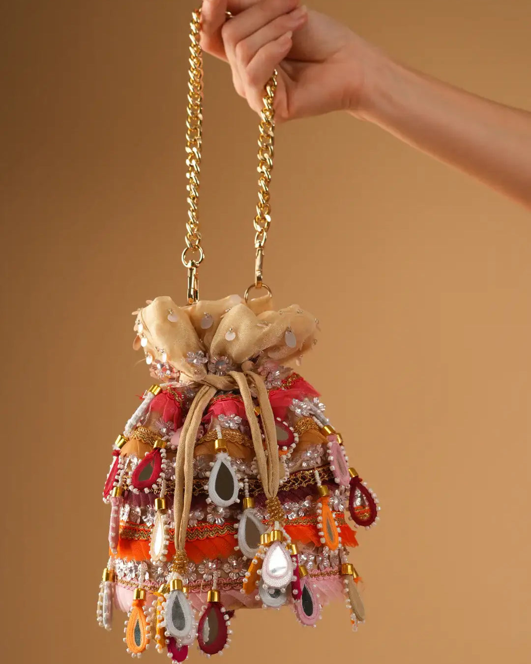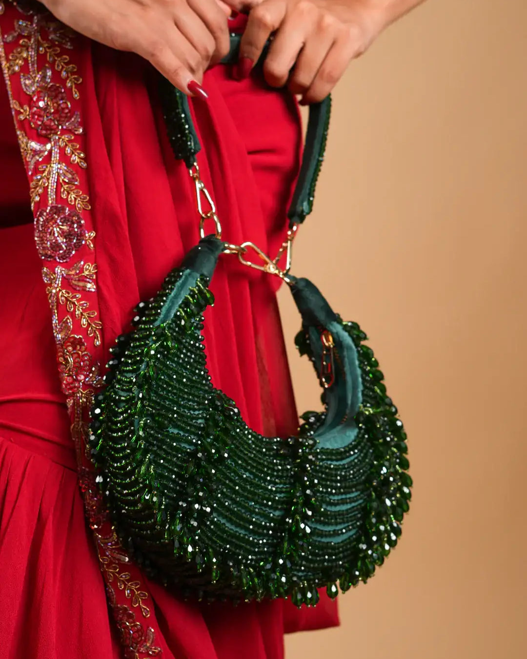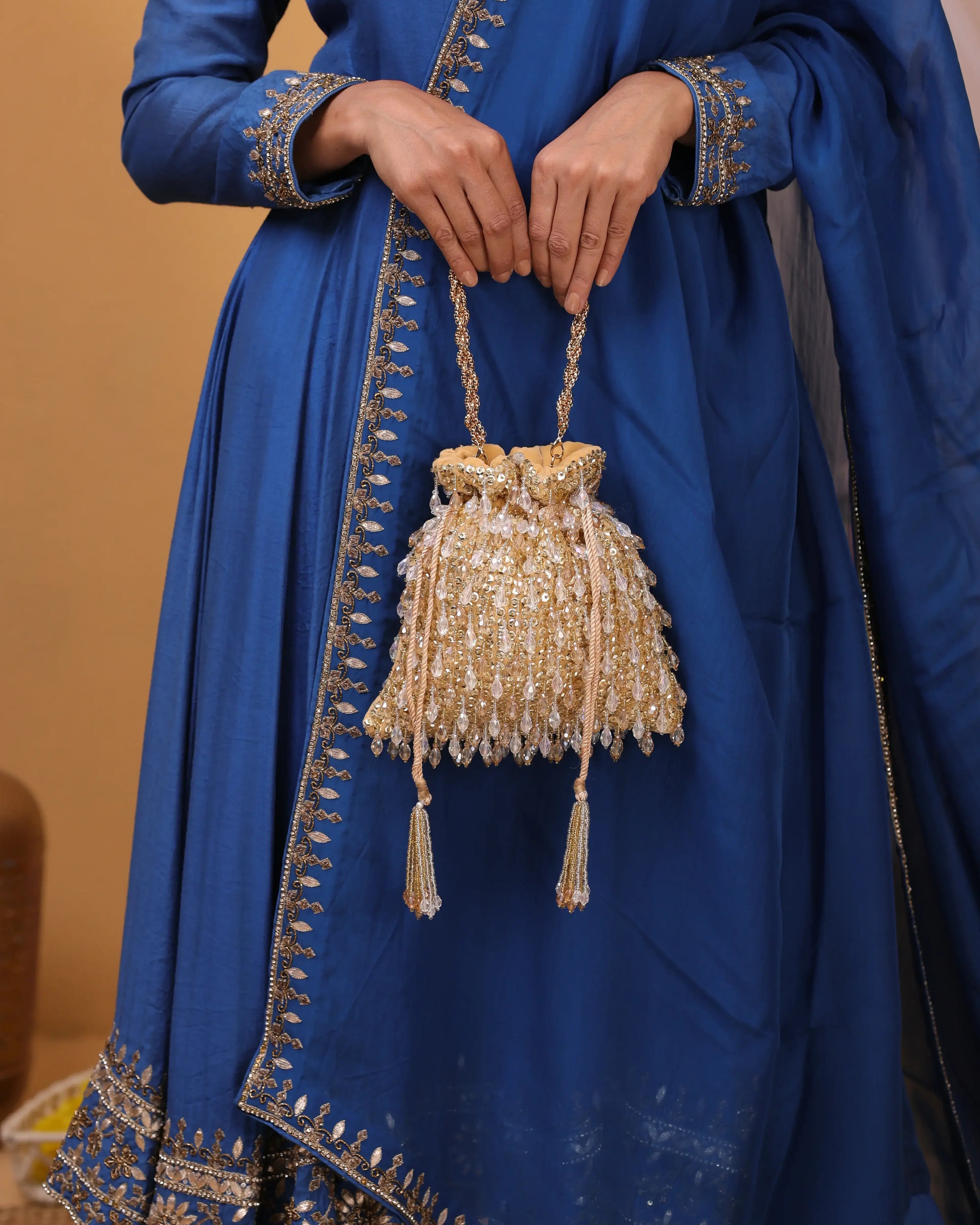 Perfect for the evening that calls for grace with a touch of grandeur, each clutch in this collection is crafted to complement dazzling gowns, lehengas, and sarees. From champagne tones to midnight hues, Reception Radiance ensures you're never without that final, flawless detail.
