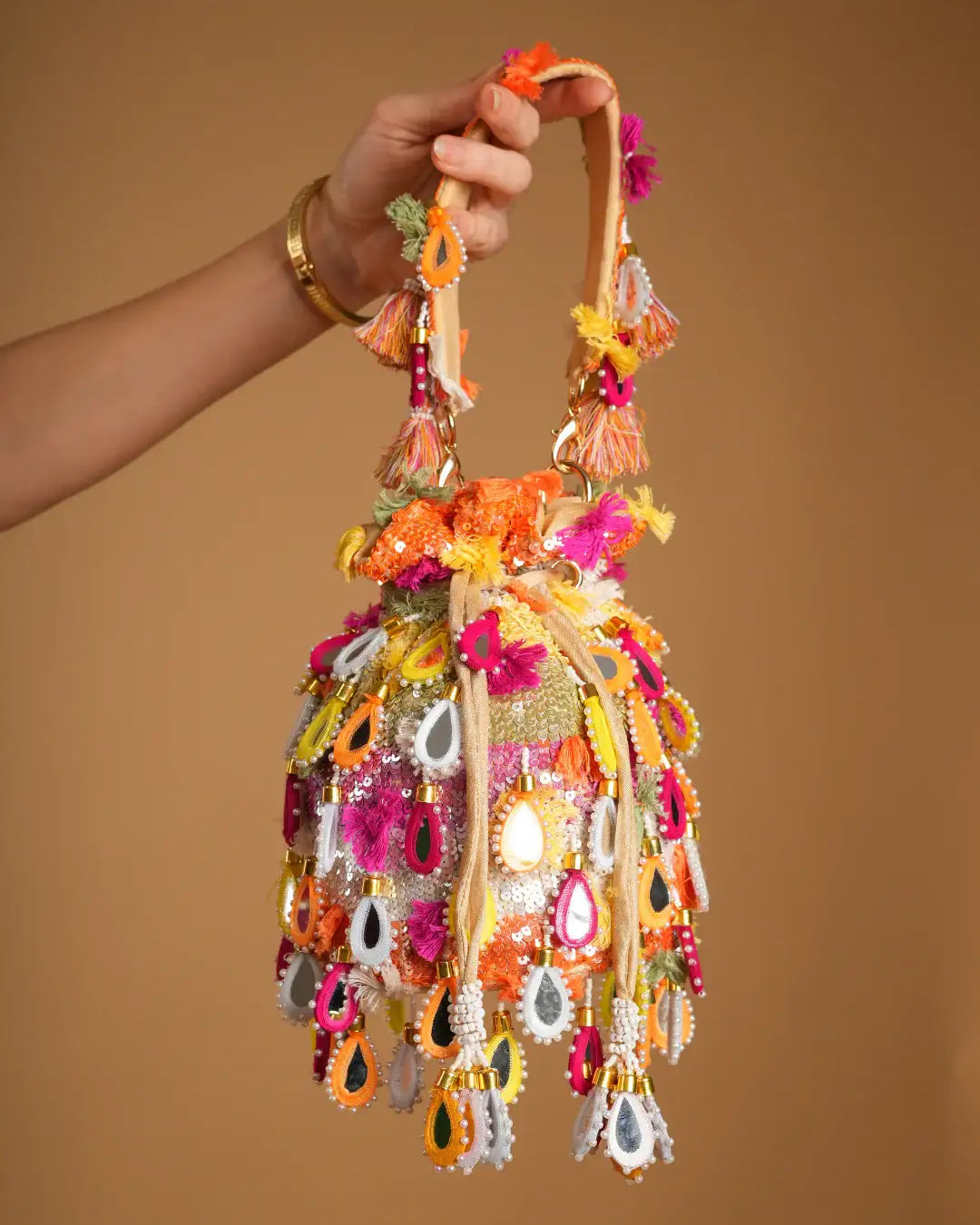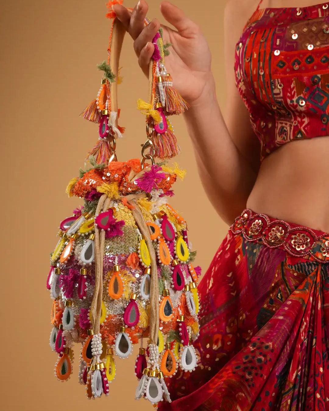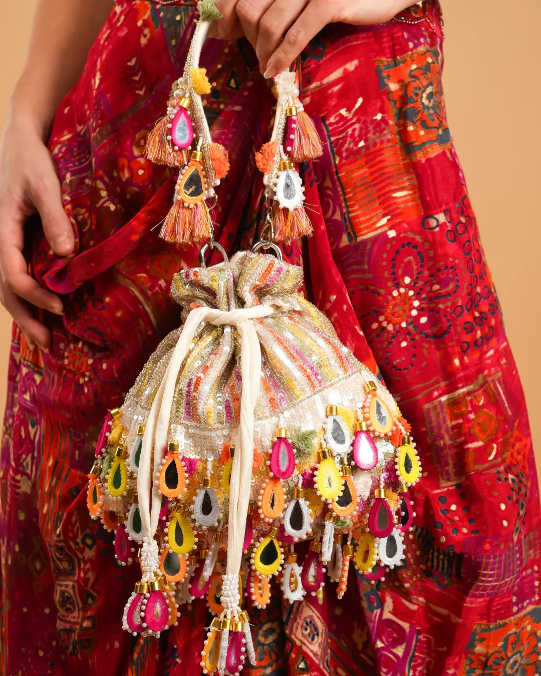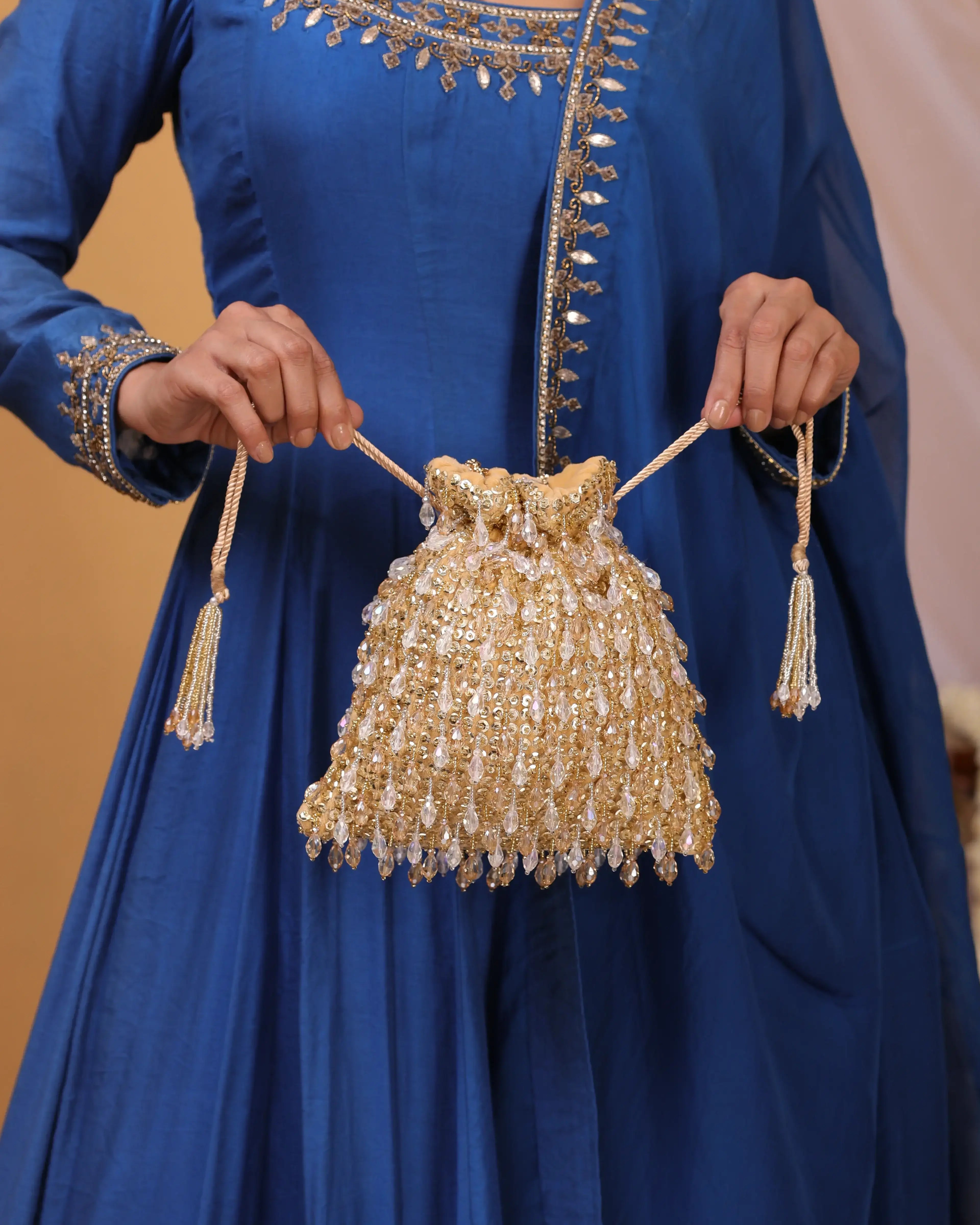 Reception Radiance is designed for the bride who steps into the spotlight with poise and power. This collection of luxe ethnic clutches blends modern silhouettes with timeless embellishments—think shimmering sequins, sleek velvets, metallic tones, and statement embroidery.