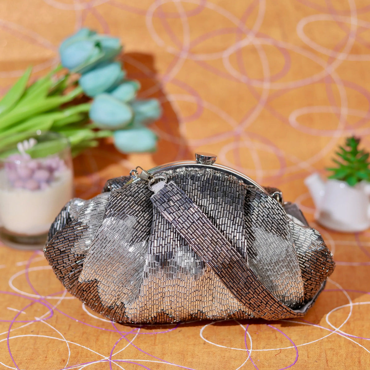 Elevate your look with our exquisite ruche gold Vintage Purse. Crafted in golden sequence, this purse features intricate sequence work, adding a touch of timeless elegance. The beautifully detailed embroidery showcases a fine blend of craftsmanship, making it a standout accessory for any occasion. Spacious yet stylish, it is perfect for carrying your essentials while complementing your attire. Whether for weddings, parties, or special celebrations, this vintage purse is a must-have addition to your accessory collection.