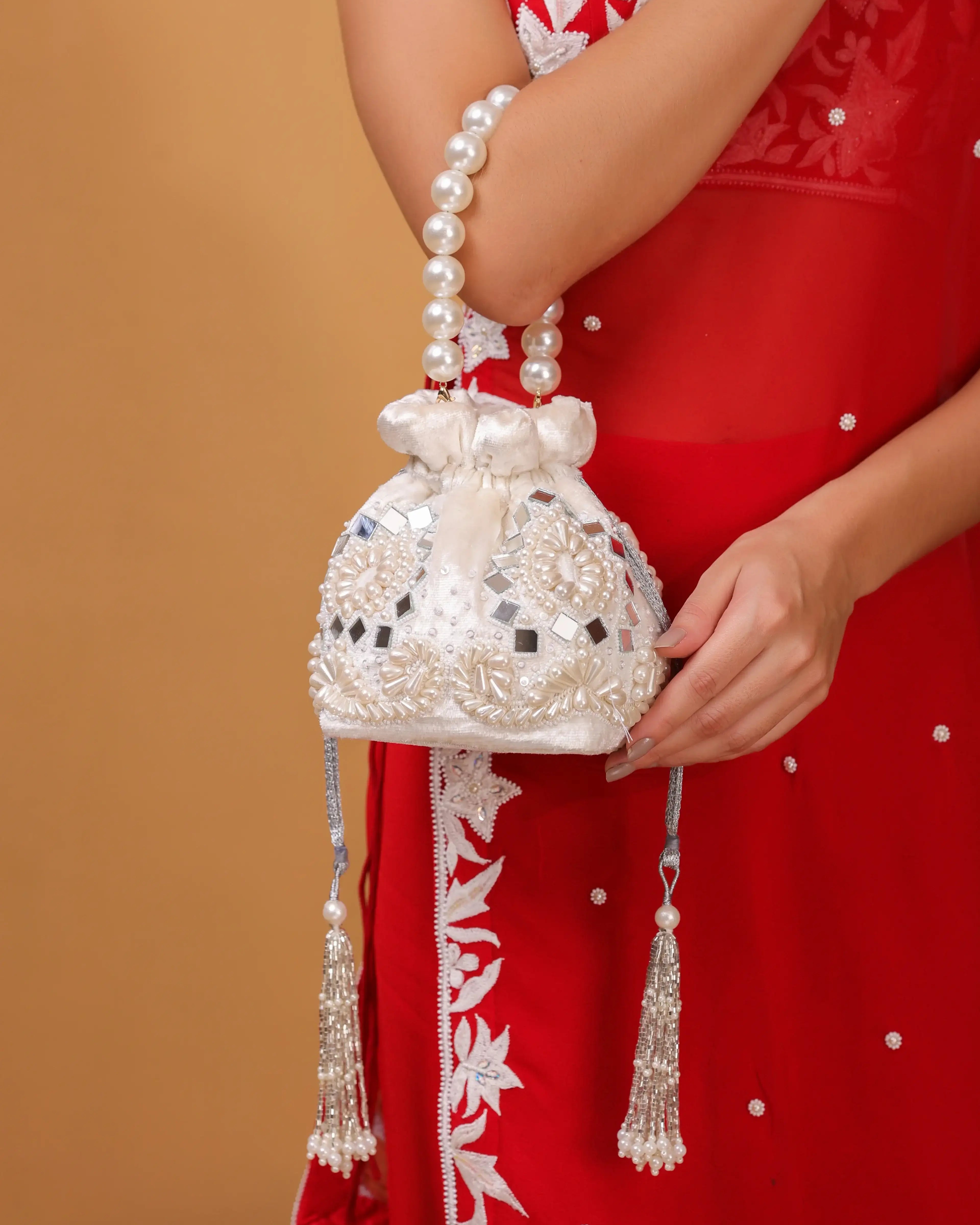 Shaadi Statement is the heart of bridal opulence—a collection of statement clutches and potlis for women crafted to match the splendor of the wedding day itself. Rich reds, deep maroons, royal golds, and intricate handwork come together to create accessories that don’t whisper—they speak volumes.