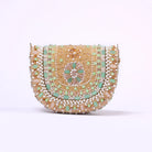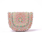 Inspired by opulent encrusted legacy Jadau and Polki jewellery, the Amara Mini Trapezium Sublime Pastel Multi is embellished with semi-precious nuggets, stones, kundans and lustrous gold silver Japanese beads. Our mini trapezium bag is a compact and edgy silhouette. This flapover is designed with soft edges. It comes with a detachable sling chain. This collectible statement accessory fits in your valuables like makeup, keys, currency and cards.