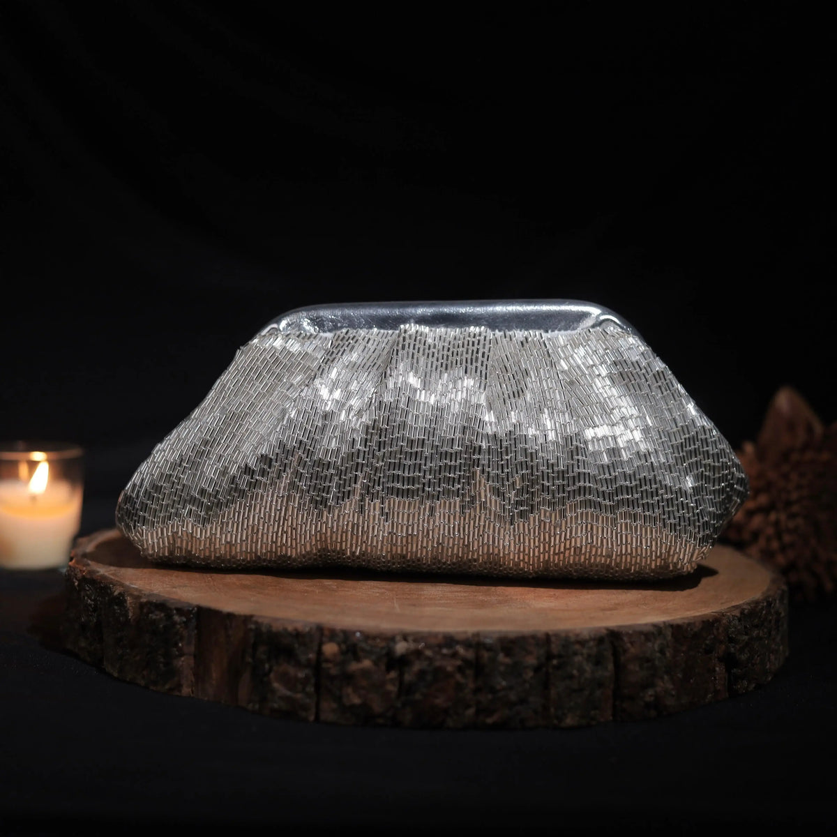 Elevate your look with our exquisite Monroe Silver Vintage Purse. Crafted in silver sequence, this purse features intricate sequence work, adding a touch of timeless elegance. The beautifully detailed embroidery showcases a fine blend of craftsmanship, making it a standout accessory for any occasion. Spacious yet stylish, it is perfect for carrying your essentials while complementing your attire. Whether for weddings, parties, or special celebrations, this potli bag is a must-have addition to your accessory collection.