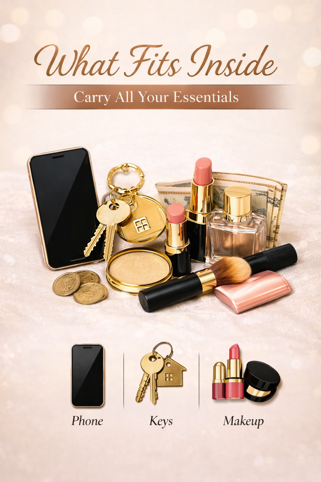 📱 Fits phone, cards, keys & lipstick easily