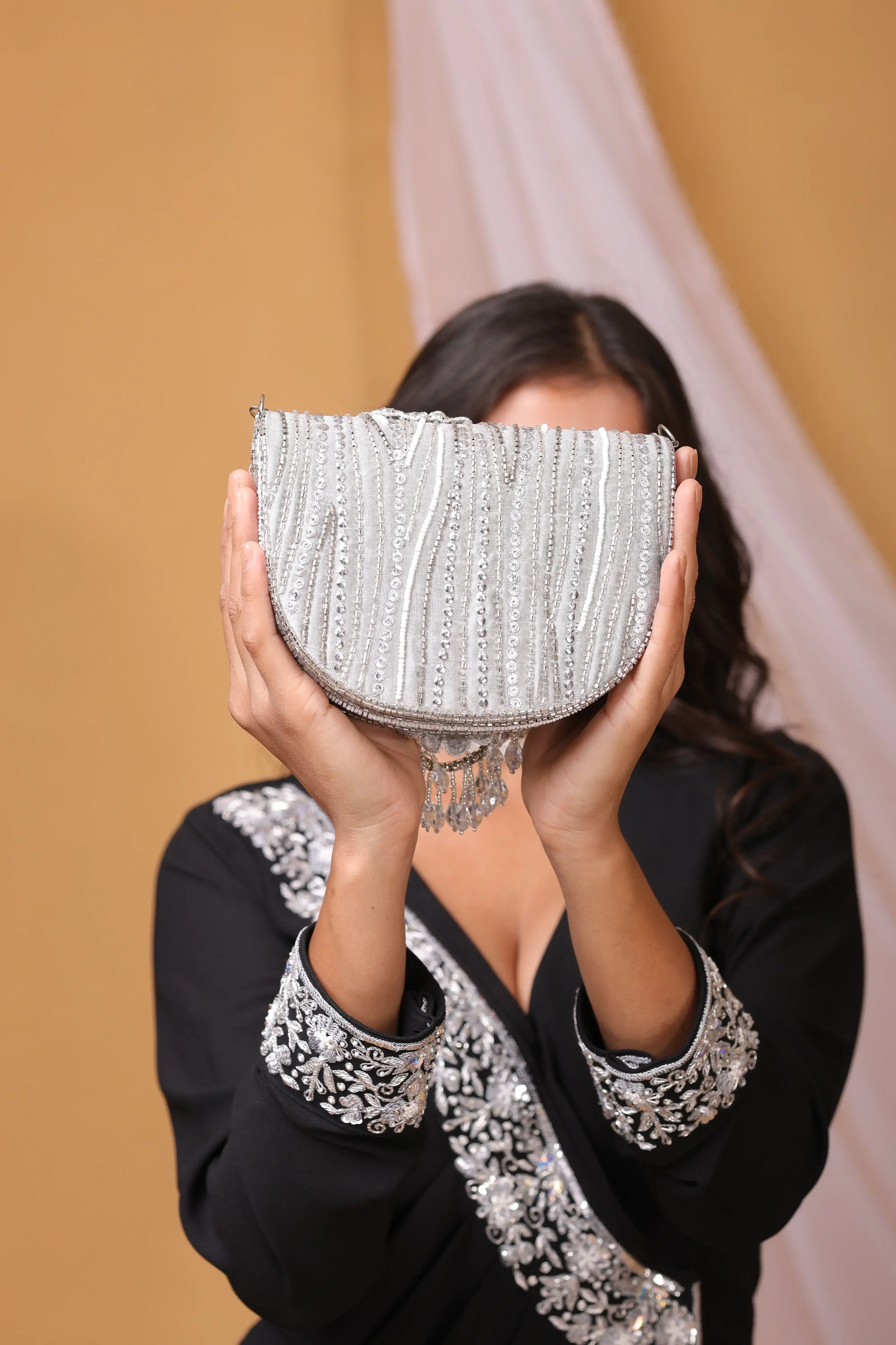 The hand-beaded chain isn’t just a handle — it’s a statement of luxury. Intricately crafted with shimmering beads and delicate tassels, it adds grace, grandeur, and exclusivity to your look.